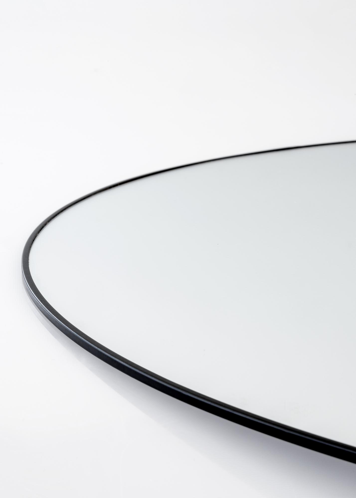 KAILA Thin Black, ein Wohnspiegel der schwedischen Wohndesign-Marke KAILA, ist in mehreren Größen erhältlich. Abgebildet ist der Spiegel mit einem Durchmesser von 100 cm Ø. Der Spiegel ist mit Wandhalterungen ausgestattet.