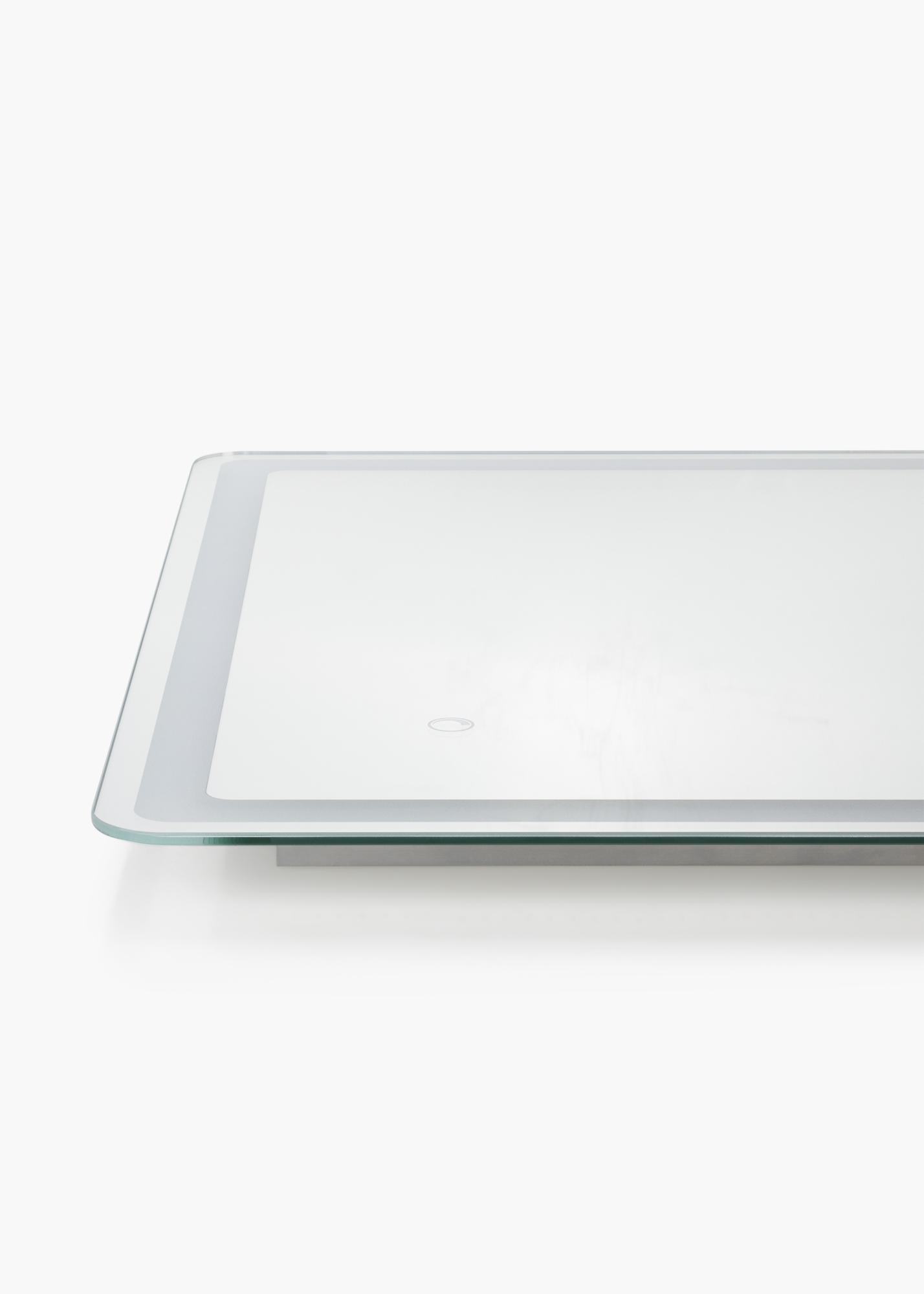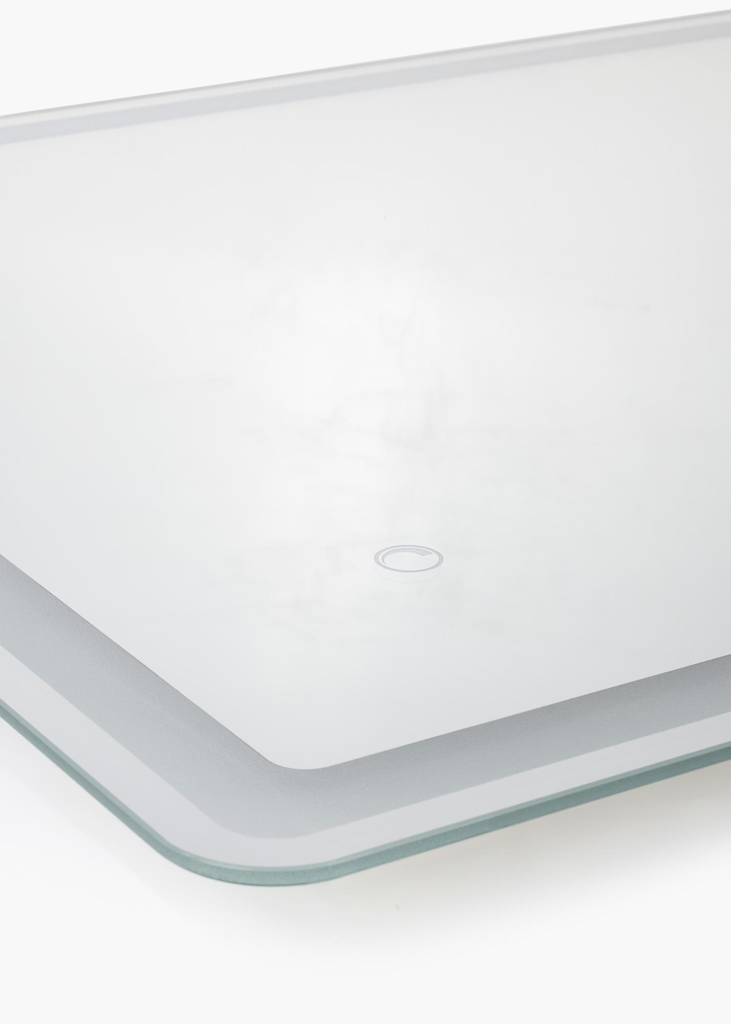 Stilvoller Badezimmerspiegel in schwedischem Design von KAILA. Der Spiegel zeichnet sich durch die weiche Formgebung mit gerundeten Kanten und der integrierten LED-Beleuchtung, die das Spiegelglas dekorativ einrahmt, aus. Die integrierte LED-Beleuchtung ist dimmbar und überzeugt durch das angenehm warmweiße Licht von 3000 K. Wird die Touch-Taste für einige Sekunden lang gedrückt gehalten, kann gedimmt werden. Die letzte Einstellung wird beim erneuten Einschalten der Beleuchtung beibehalten.