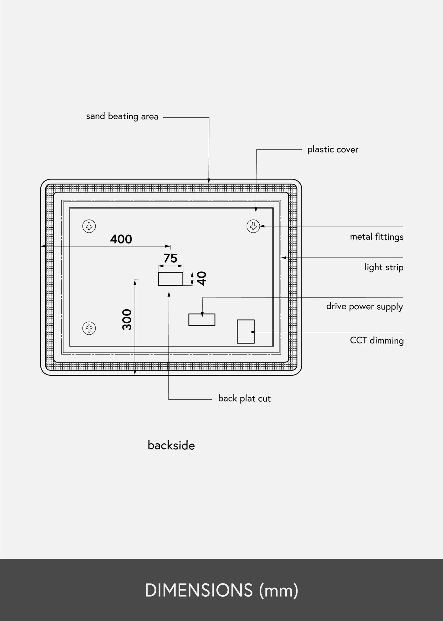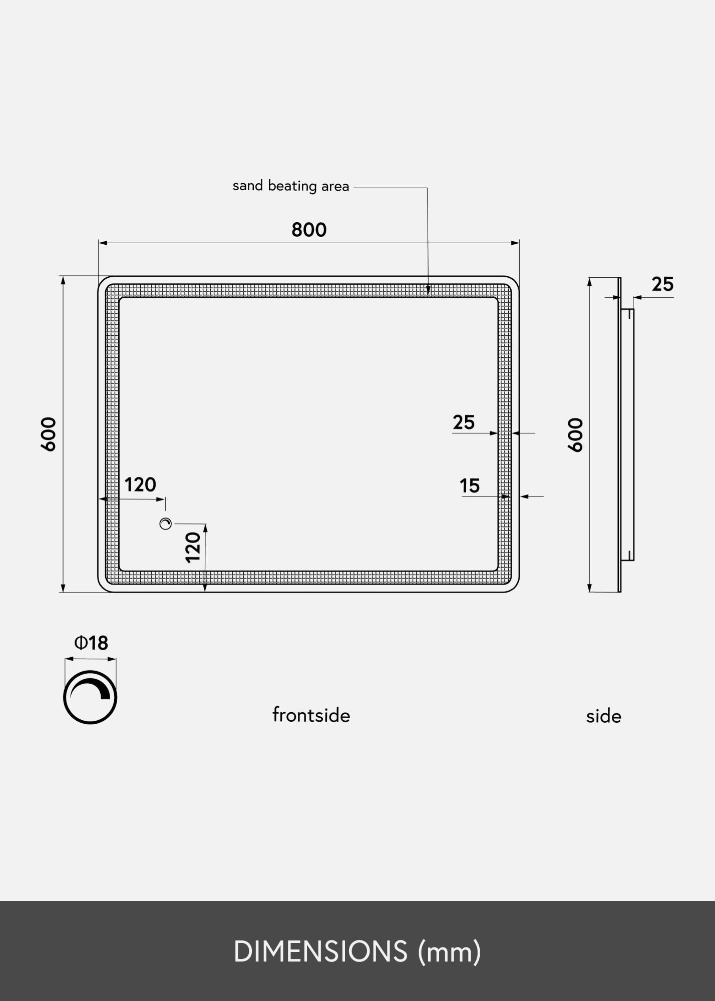Der beleuchtete Badezimmerspiegel besitzt die Maße 60x80 cm. Er kann sowohl waagrecht als auch vertikal aufgehängt werden, der Spiegel ist mit den entsprechenden Wandhalterungen ausgestattet. Dieser LED-Badspiegel ist für die Verwendung in Badezimmern geeignet. Der Spiegel ist für feste Installation vorgesehen und muss an einen Stromschalter angeschlossen werden. Damit der Spiegel ordnungsgemäß und korrekt funktioniert, muss er an einen normalen Schalter angeschlossen werden, nicht an einen Dimmschalter.