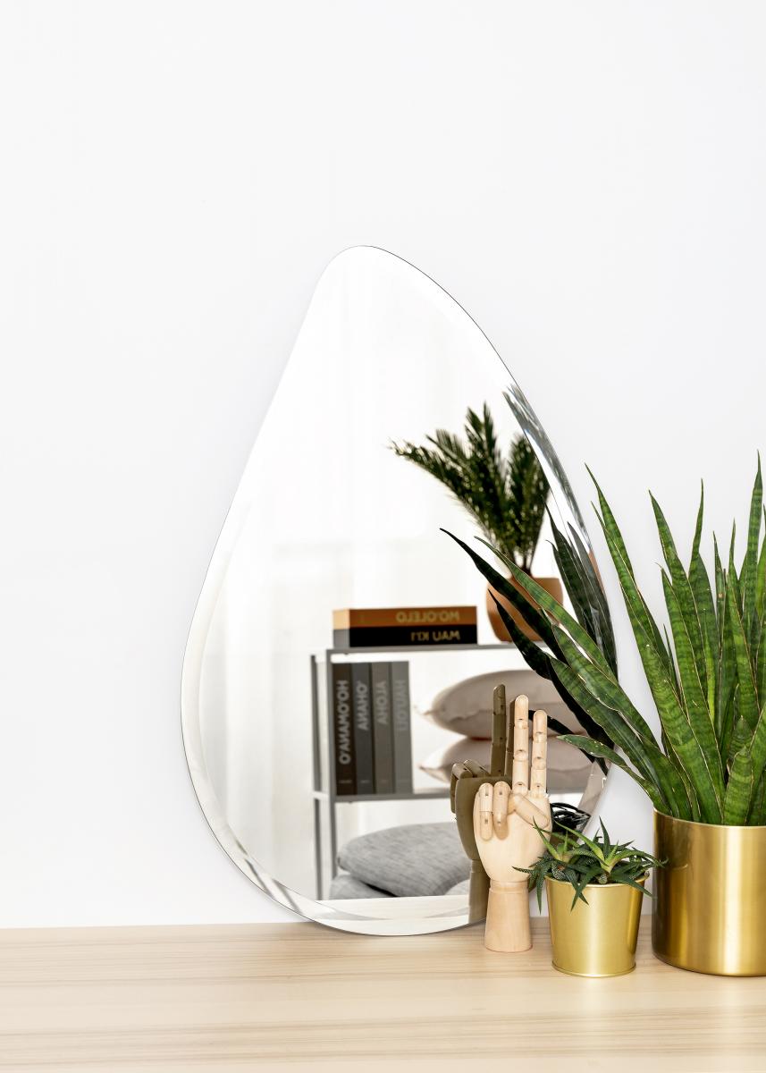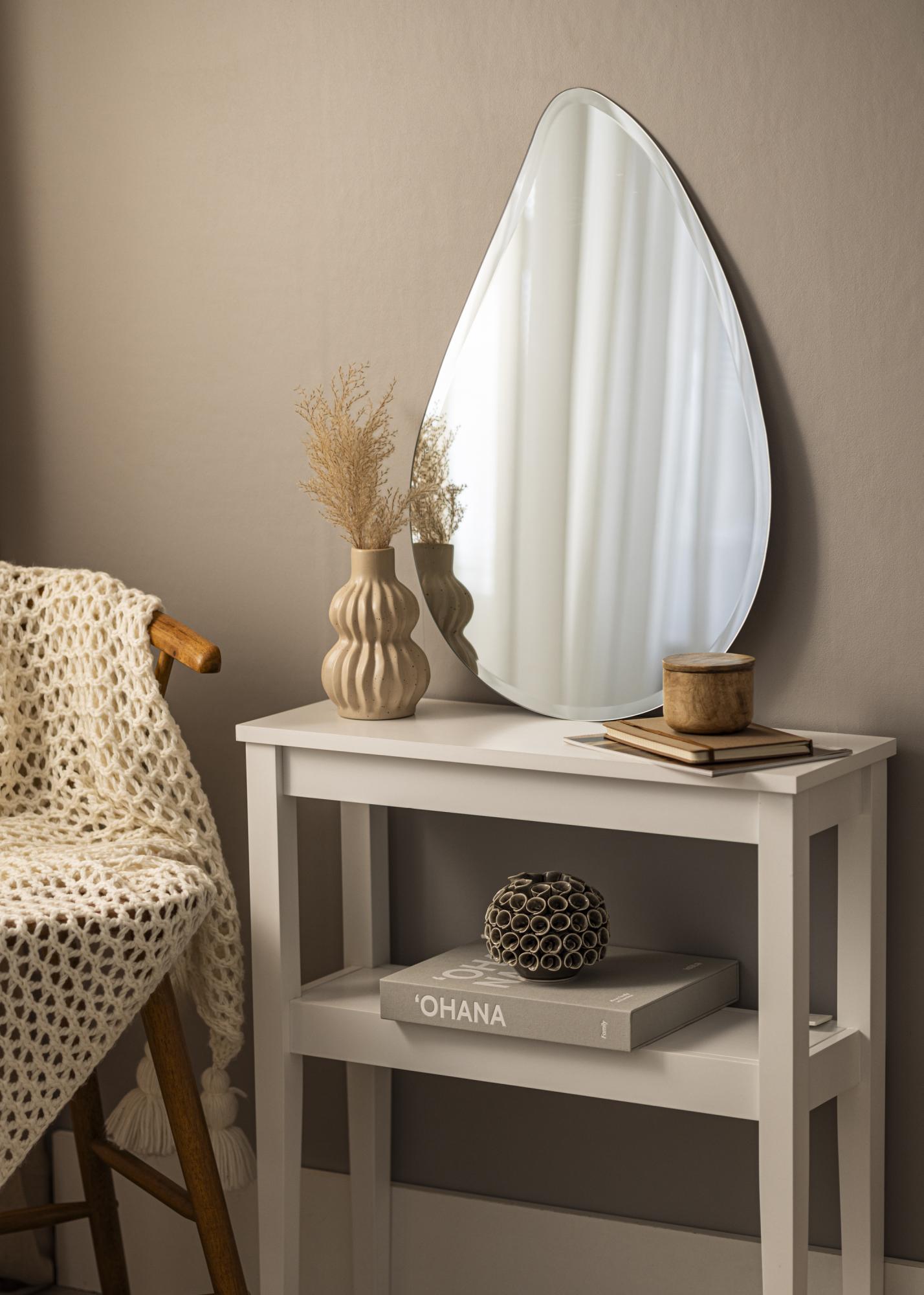 Hänge diesen eleganten Spiegel dort auf, wo er sowohl eine dekorative Wirkung als auch einen praktischen Nutzen hat, zum Beispiel im Flur, Schlafzimmer oder Wohnzimmer. Dieser tropfenförmige Spiegel ist in verschiedenen Größen erhältlich. Diese Variante hat die Größe 45x70 cm.