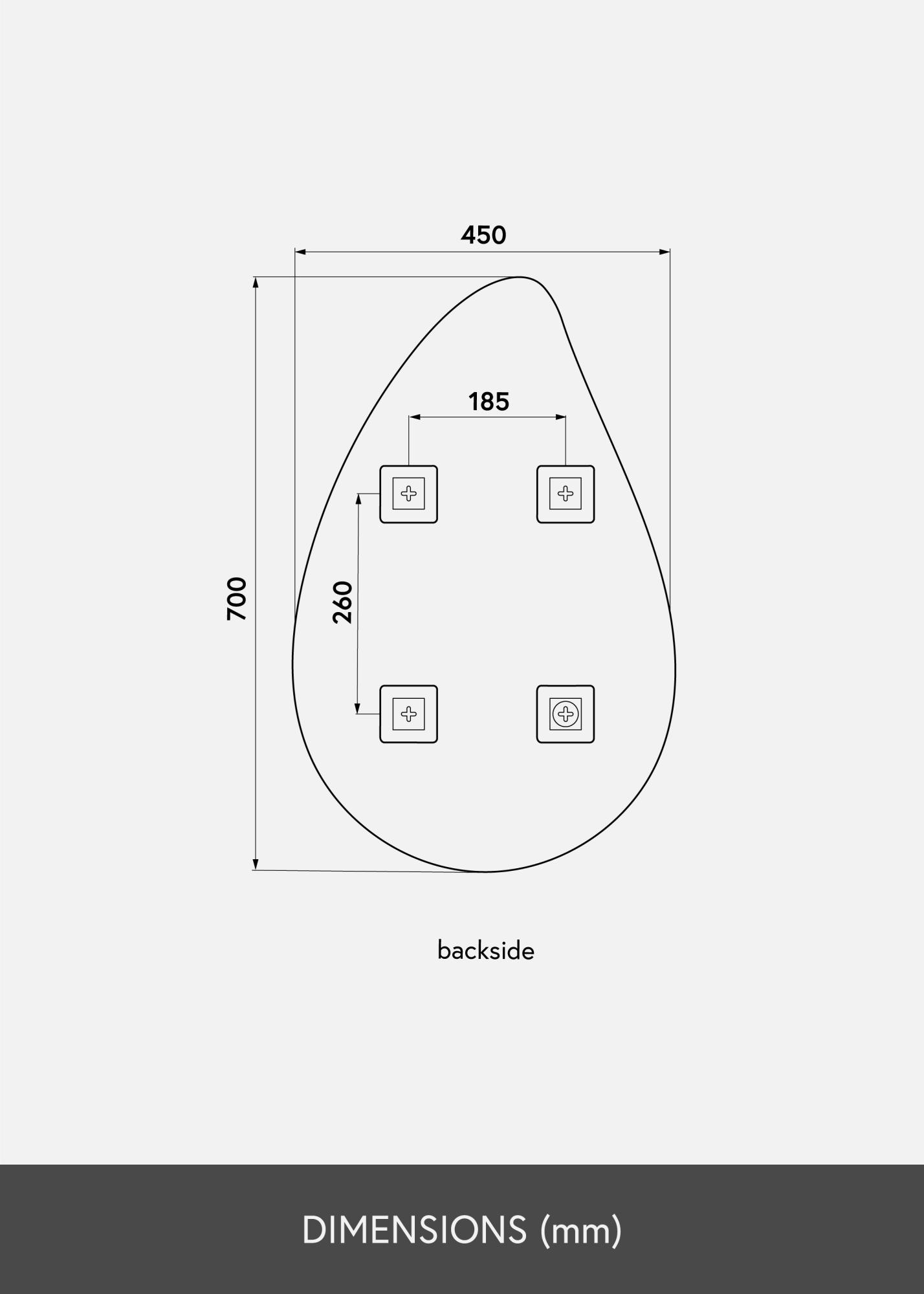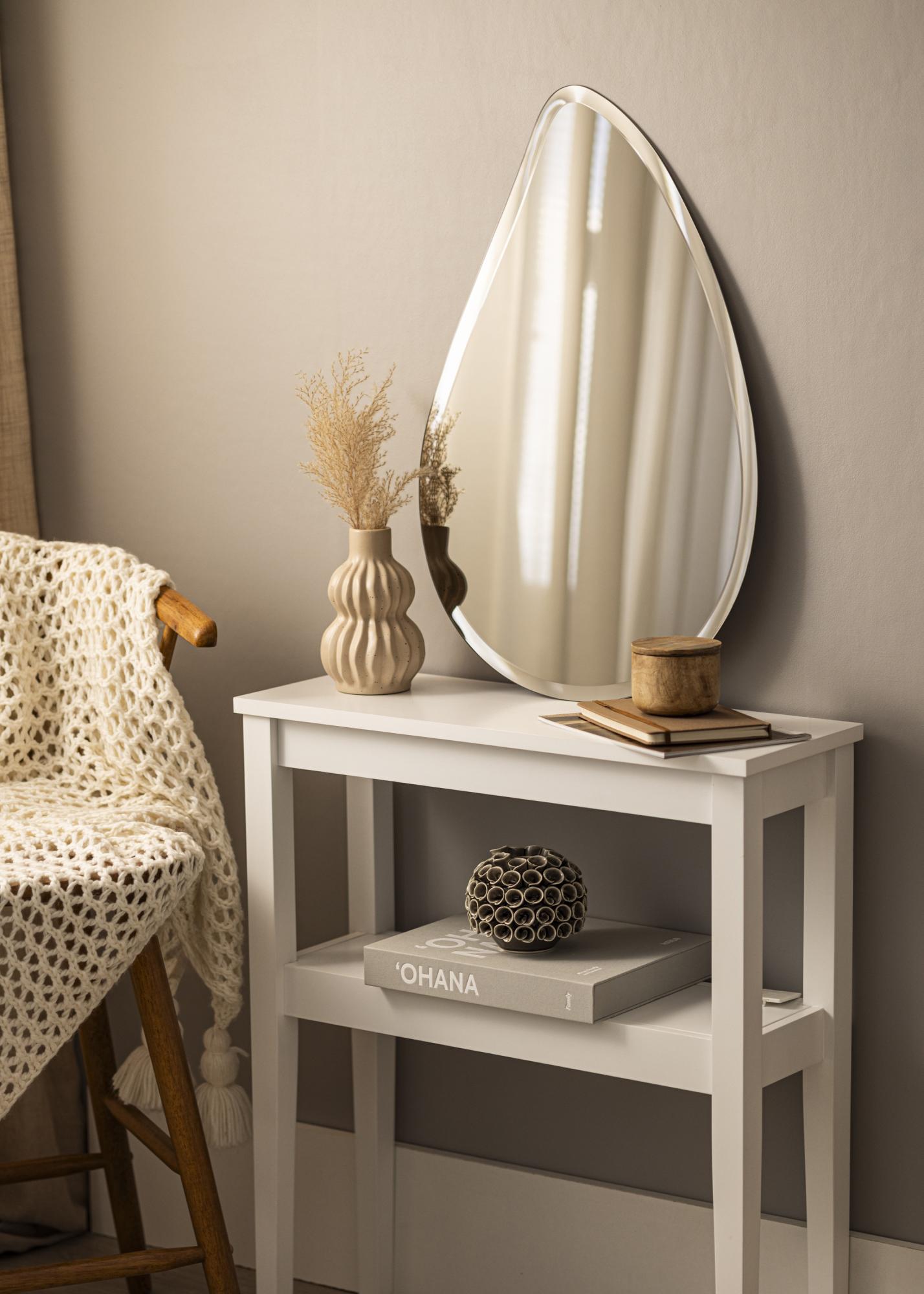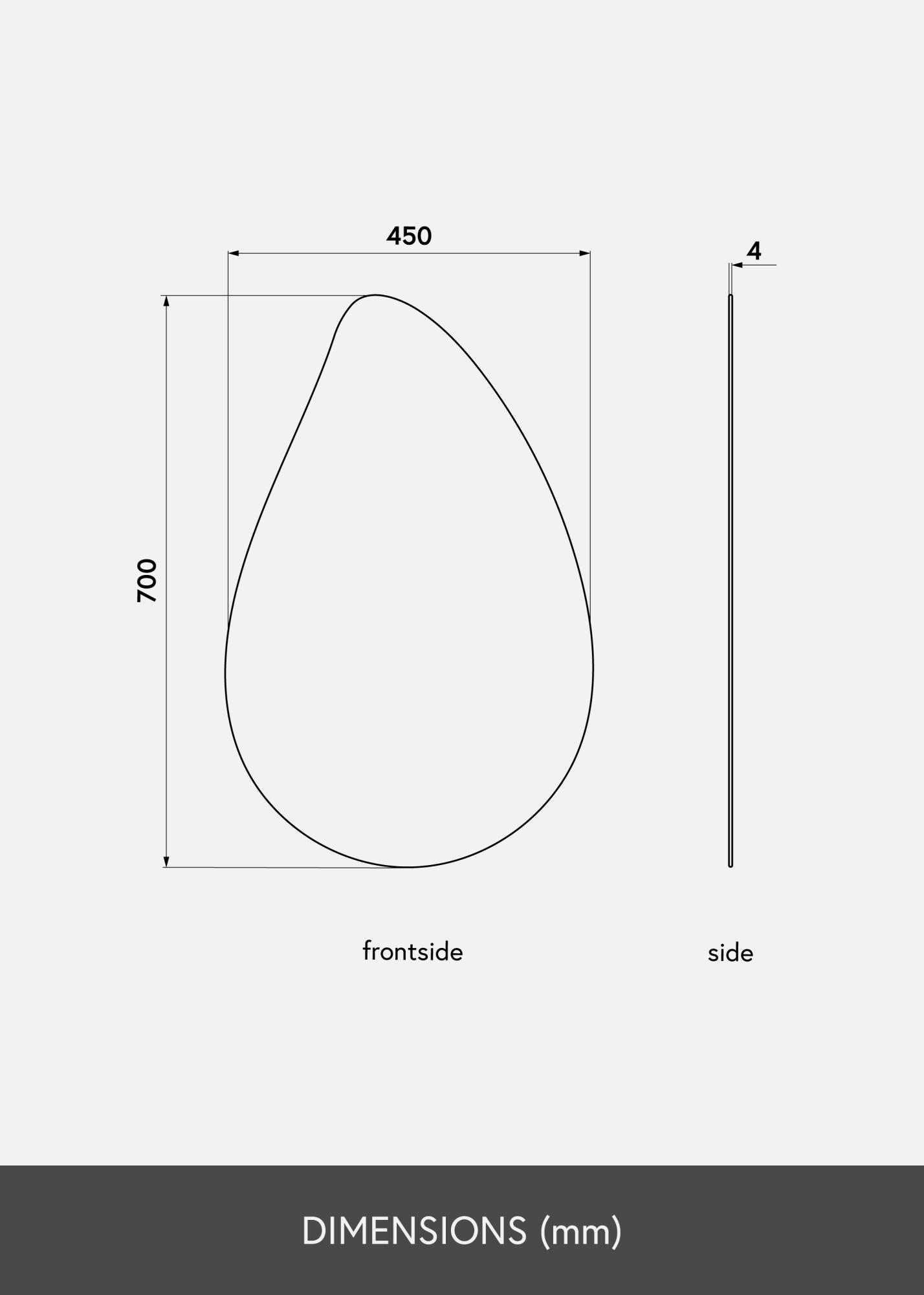 Dieser Wandspiegel in Tropfenform ist in mehreren Größen erhältlich; die abgebildete Variante hat die Größe 45x70 cm.