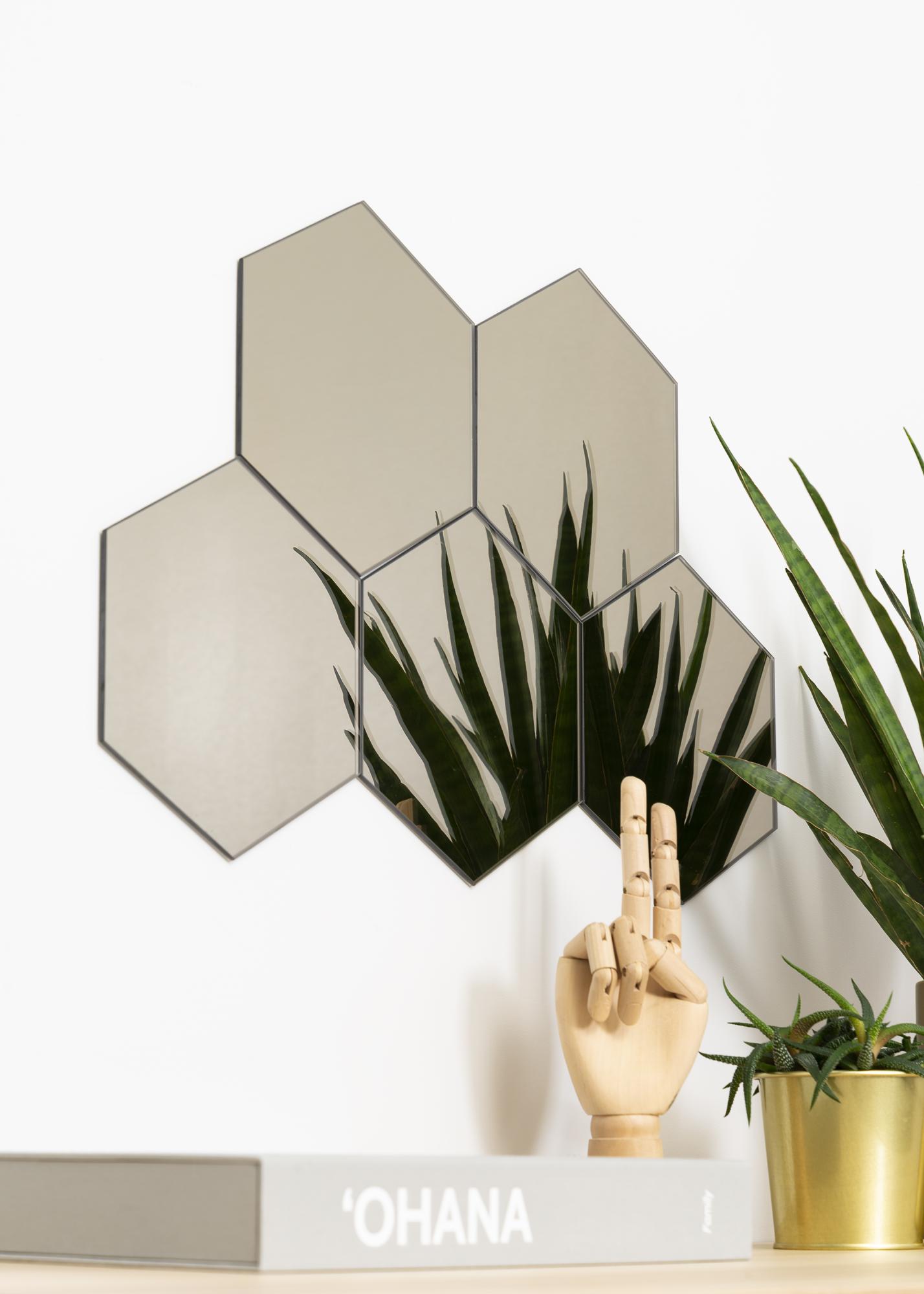 Lass deiner Kreativität freien Lauf und gestalte deine Wände ganz individuell! Mit diesen hübschen sechseckigen Wandspiegeln kannst du eine wunderbare Wanddekoration schaffen. Die Spiegel sind im 5er-Pack erhältlich und werden mit doppelseitigem Klebeband für einfache Wandmontage geliefert. Das Spiegelglas ist in stilvollem, etwas dunklerem Bronzefarbton getönt, was den Spiegeln einen eigenen, trendy und auch eleganten Ausdruck verleiht.