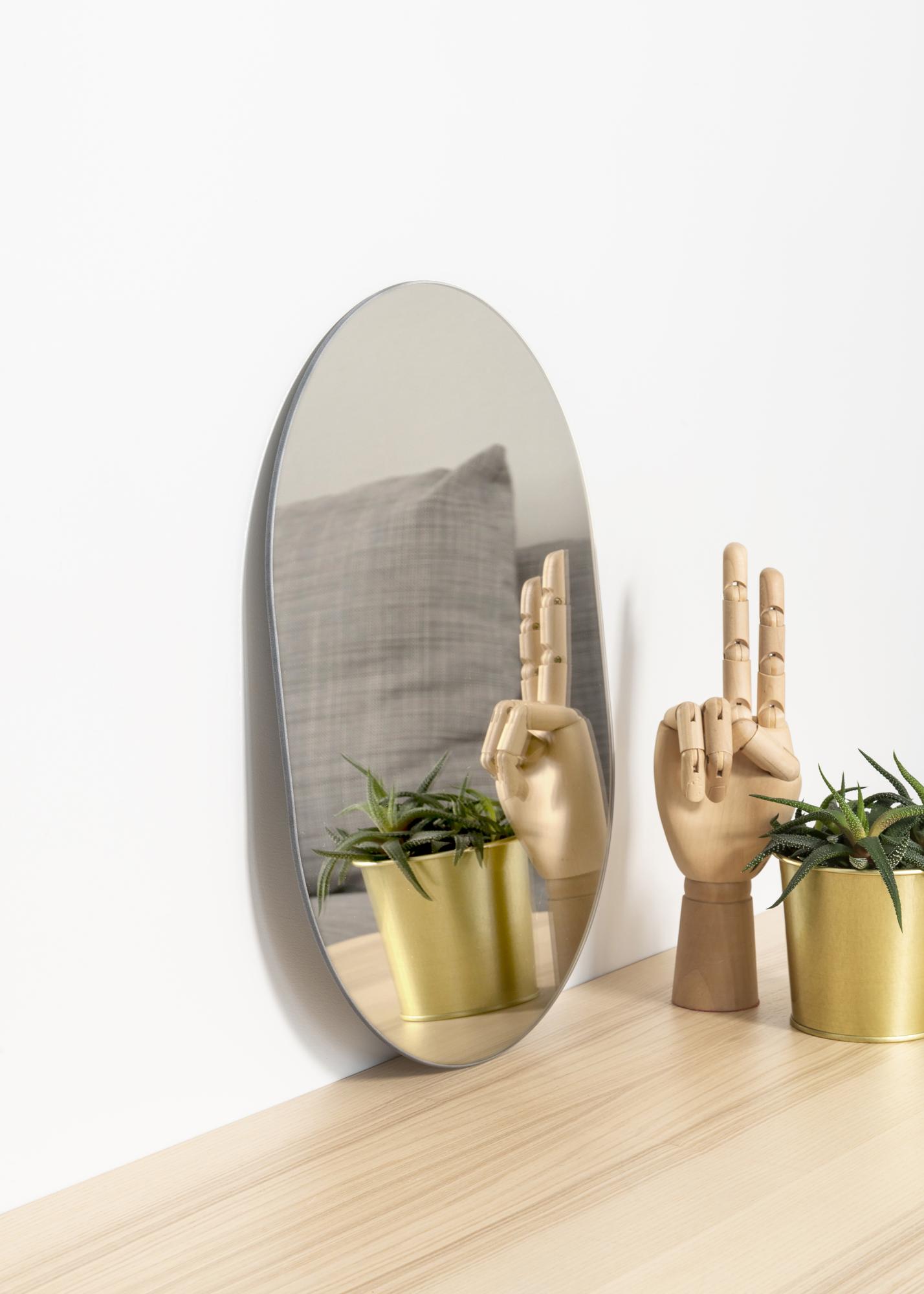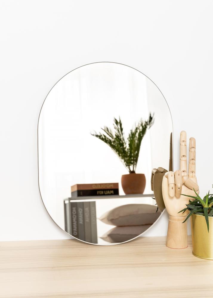 Ein ovaler Spiegel hat die gleichen praktischen Vorteile wie ein rechteckiger Spiegel, besitzt aber die Eleganz eines runden Spiegels - eine ganz besondere Spiegelform sozusagen. Dieser ovale Spiegel ist außerdem besonders dünn und hat keinen Rahmen, was das elegante Aussehen noch weiter verstärkt.