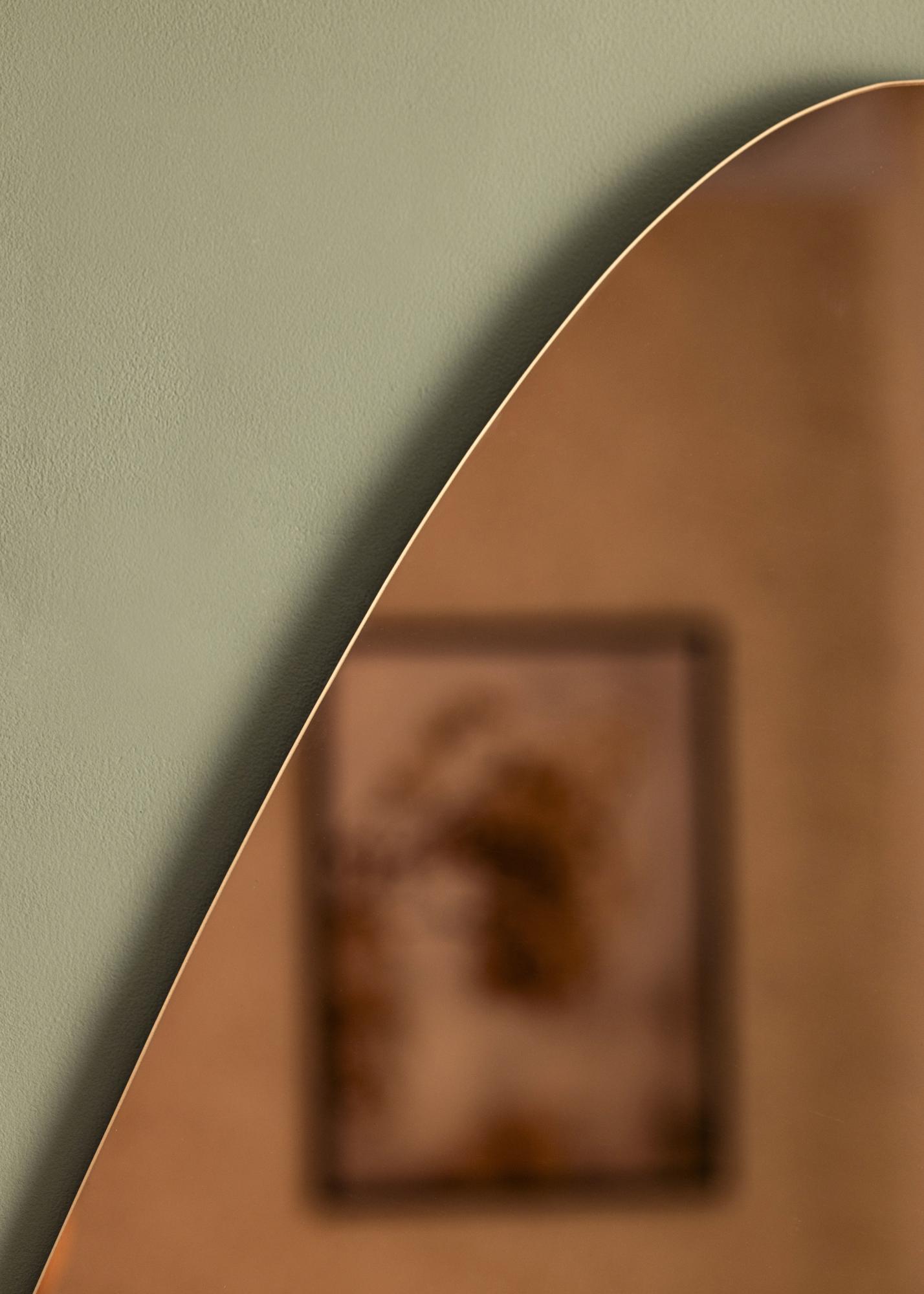 Dieser asymmetrische Spiegel verleiht deinem Zuhause einen modernen Touch, und mit seinen großzügigen Maßen von 70x100 cm hinterlässt er sicherlich einen starken Eindruck! Der Spiegel hat außerdem ein roségoldfarbenes Spiegelglas, welches das auffällige und charakteristische Design des Spiegels verstärkt. Dieser Spiegel ist zudem sehr dünn, was ihm ein elegantes Aussehen verleiht und ihn noch moderner wirken lässt.