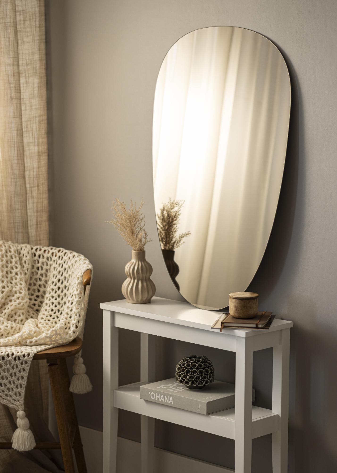 Der asymmetrische Wandspiegel mit den weichen Formen kommt elegant und trendy daher. Das stilvolle, in dunklerem Bronzeton getönte Spiegelglas lässt sich gut mit anderen Farben der Wohneinrichtung kombinieren. Der rahmenlose Spiegel ist im Profil sehr flach, wodurch das moderne Design noch stärker betont wird. Ein Spiegel, der gut in Flur, Wohn- oder Schlafzimmer passt - oder wo auch immer funktionelles und zugleich elegant-stilvolles schwedisches Design gefragt ist.