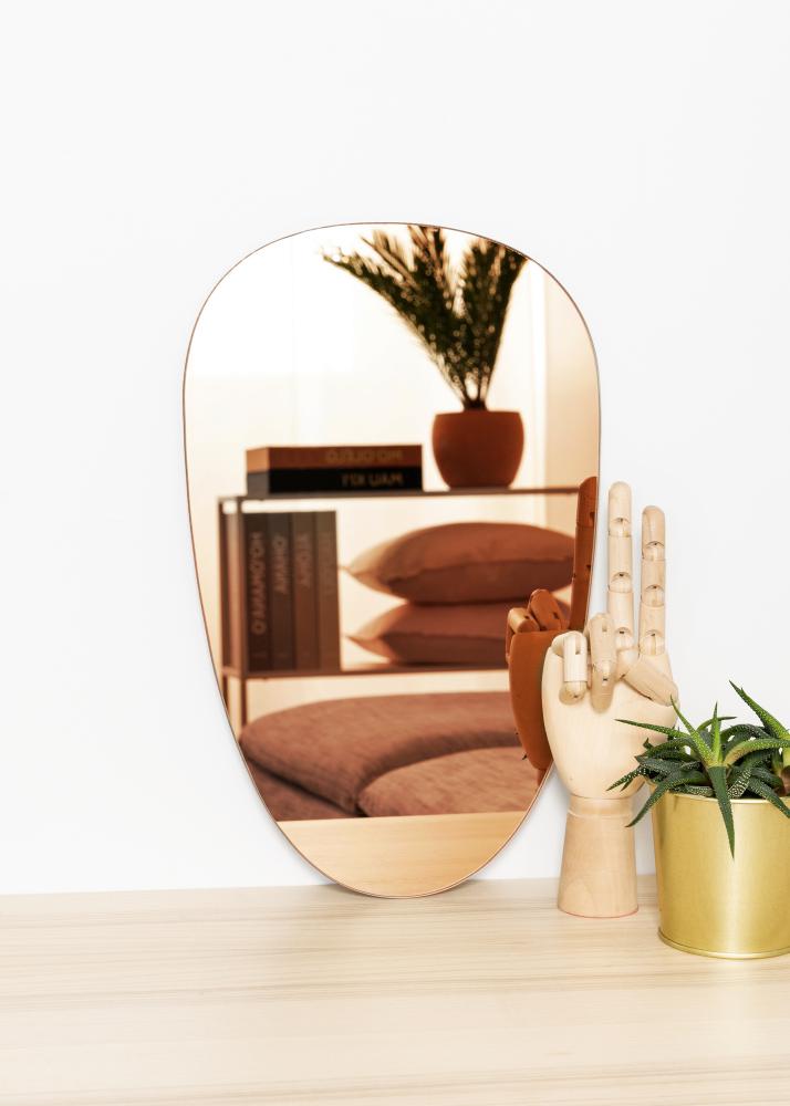 Dieser moderne und asymmetrische Spiegel gibt deinem Zuhause einen außergewöhnlichen Touch! Die sanfte und fast ovale Form des Spiegels verleiht ihm viel Eleganz. Dies wird außerdem dadurch verstärkt, dass der Spiegel sehr dünn ist und keinen Rahmen hat. Das Spiegelglas ist in einer warmen roségoldenen Nuance gefärbt, was einen starken Effekt erzeugt und zu dem modernen Aussehen des Spiegels beiträgt.