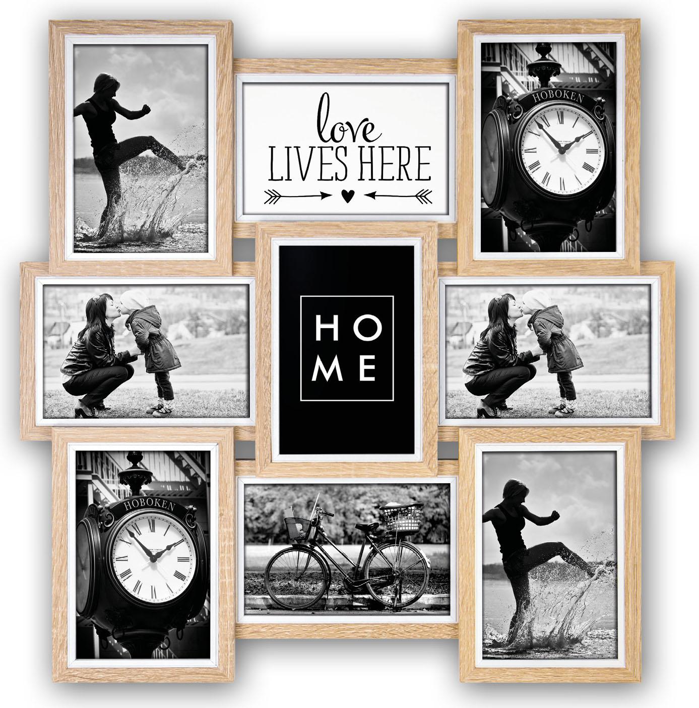 Mit Platz für 9 Bilder im Format 10x15 cm ist dieser stilvolle Collage-Rahmen aus Holz eine perfekte Möglichkeit, verschiedene Bilder zu präsentieren, von Familienmitgliedern bis zu denkwürdigen Anlässen.