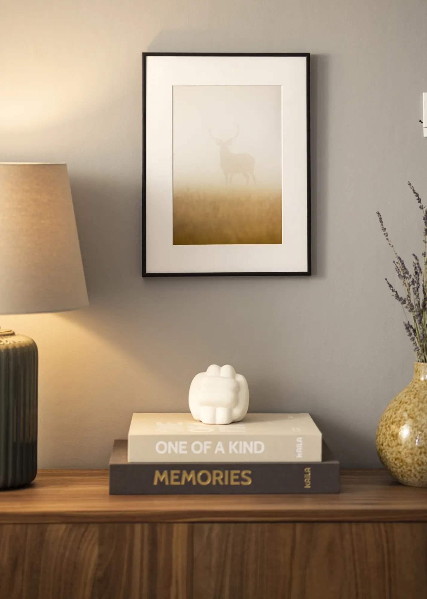 Wenn du dir einen Bilderrahmen wünscht, der nicht zu dominant wirkt, aber trotzdem deine schönen Bilder in den Mittelpunkt stellt, ist "Kopenhagen Schwarz" eine gute Wahl. "Kopenhagen Schwarz" vermittelt mit seinem schmalen, glänzenden Aluminiumprofil ein Gefühl von Eleganz und passt in nahezu jede Umgebung.