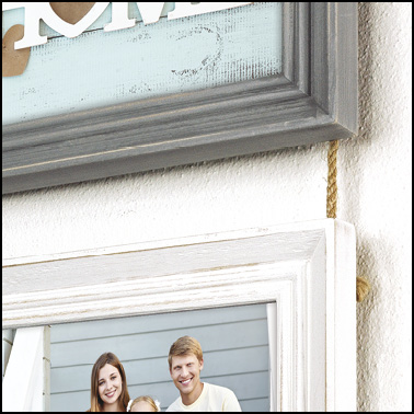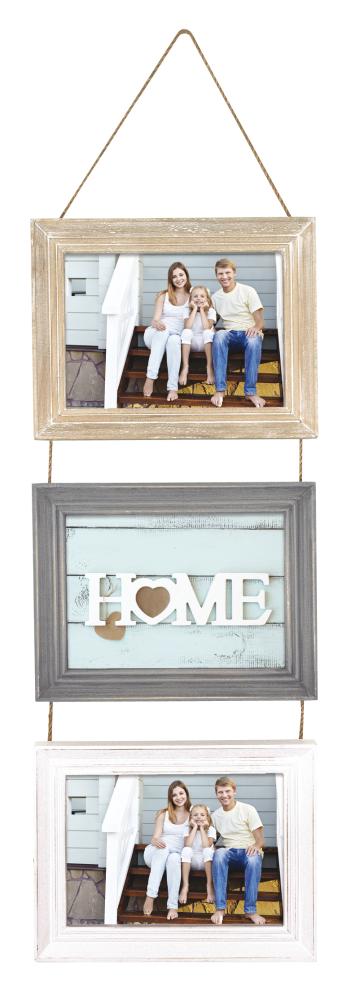 Fülle dein Zuhause mit gerahmten Fotos von geliebten Menschen und erschaffe so eine warme und gemütliche Atmosphäre. Dieser rustikale Collage-Rahmen bietet Platz für drei deiner besten Querformat-Fotos mit den Maßen 10x15 cm. Die einzelnen Bilderrahmen sind in den Farben Holz, Grau und Weiß mit abgenutzt aussehenden Details gehalten. Sie werden mit einem dekorativen, dünnen Seil zusammengehalten, das auch einfach zum Aufhängen verwendet werden kann.