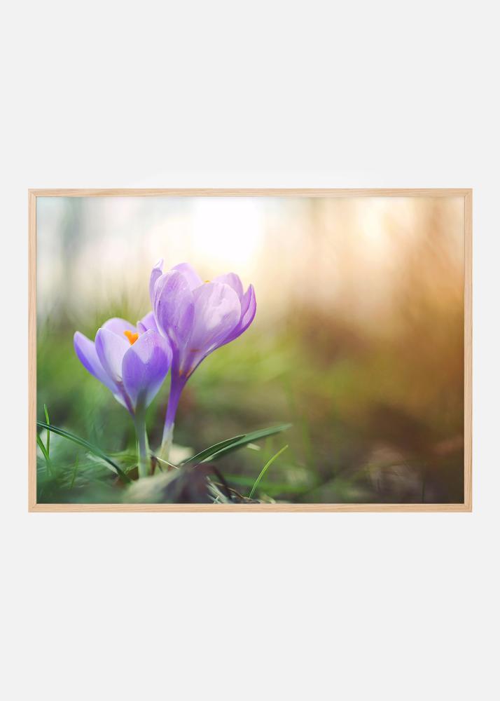 Ein bezauberndes Bild des vielleicht farbenprächtigsten Sonnenanbeters des Frühlings, der Krokus. Der verschwommene Hintergrund in Komplementärfarbe hebt die Blumen hervor und verleiht dem Fotografie Harmonie. Geeignet für jeden, der Farbenfreude in sein Zuhause bringen möchte, und es ist immer schön, einen Farbton aus dem Bild als Akzentfarbe in der übrigen Einrichtung zu verwenden. Kombinieren Sie es gerne mit anderen Pflanzenmotiven, um ein ganzheitliches Gefühl im Raum zu schaffen.
