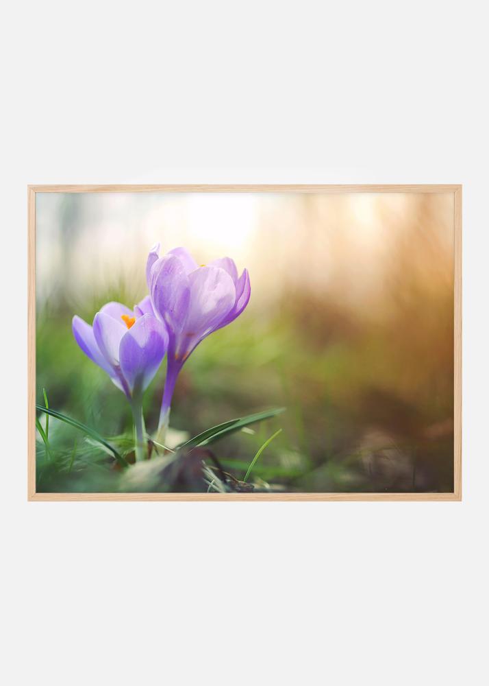 Ein bezauberndes Bild des vielleicht farbenprächtigsten Sonnenanbeters des Frühlings, der Krokus. Der verschwommene Hintergrund in Komplementärfarbe hebt die Blumen hervor und verleiht dem Fotografie Harmonie. Geeignet für jeden, der Farbenfreude in sein Zuhause bringen möchte, und es ist immer schön, einen Farbton aus dem Bild als Akzentfarbe in der übrigen Einrichtung zu verwenden. Kombinieren Sie es gerne mit anderen Pflanzenmotiven, um ein ganzheitliches Gefühl im Raum zu schaffen.