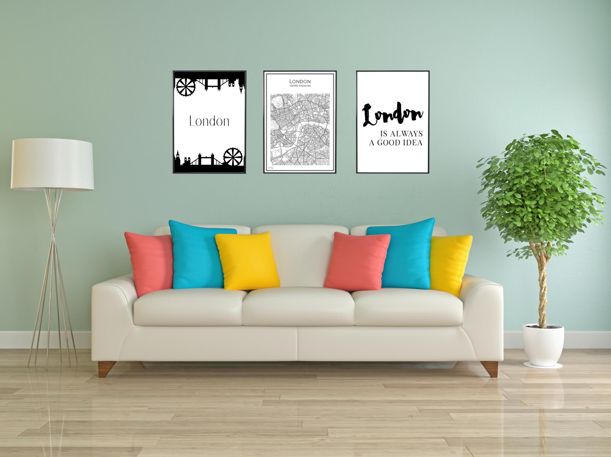 Das Plakat für jeden, der von London besessen ist und gerne ein Wochenende dort verbringt, sobald sich die Gelegenheit bietet. Der grafische Print ist schön zusammen mit anderen London-Motiven, wie Karten und Fotografien, an einer Themenwand aufzuhängen, die ein Blickfang im Raum wird. Das Poster kommt gut in einem schwarzen oder weißen dünnen Rahmen zur Geltung, der das Motiv für sich sprechen lässt und die stilvolle Tafel passt gut in alle Arten von Einrichtungsstilen und Umgebungen.