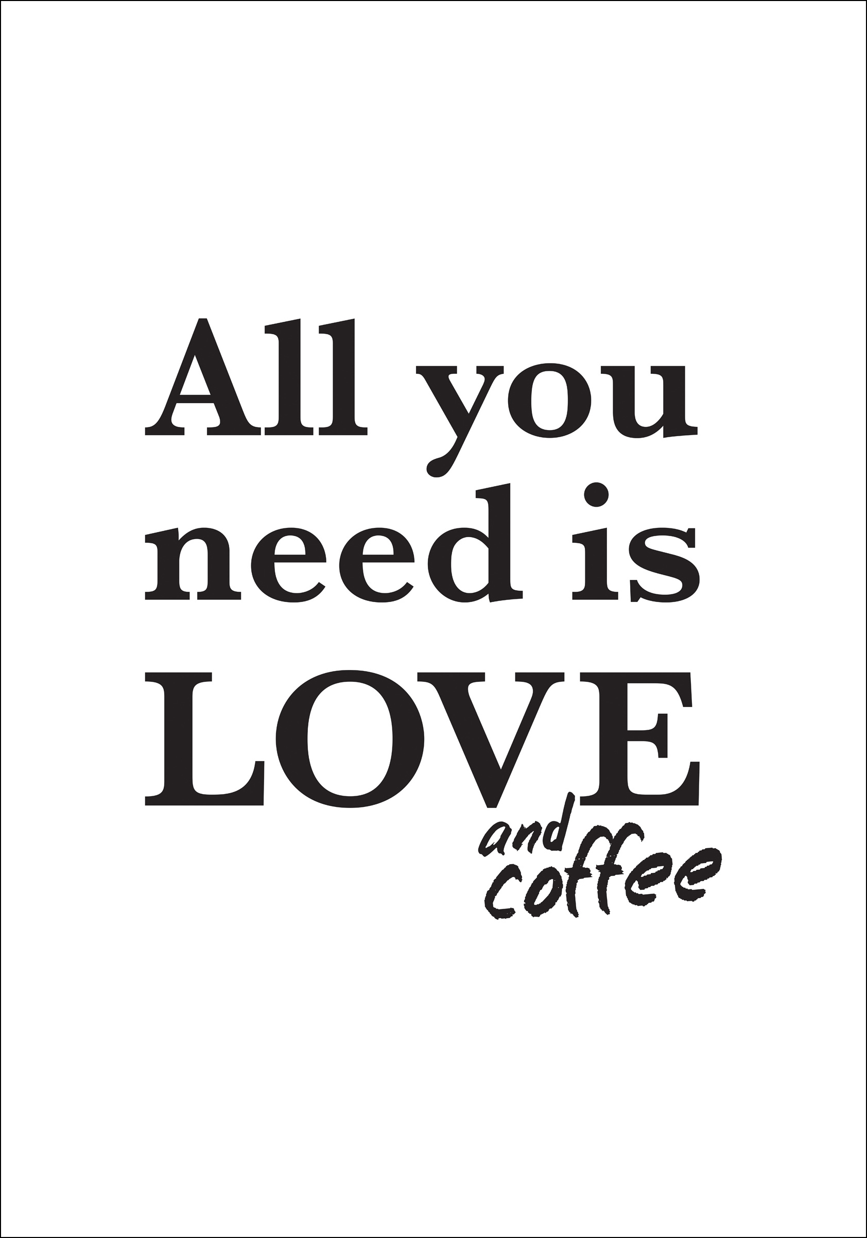 Alles, was du hier im Leben brauchst, ist Liebe. Und natürlich Kaffee! Dieses charmante Poster wird ein schönes Element in der Kücheninneneinrichtung zu Hause oder bei der Arbeit. Das Poster ist weiß mit einem schwarzen Druck in Form des Textes "All you need is love and coffee". Man bekommt den Eindruck, dass "and coffee" nachträglich hinzugefügt wurde. Das schwarz-weiße Design lässt sich vorteilhaft mit einem stilvollen bilderrahmen in deiner Lieblingsfarbe kombinieren.