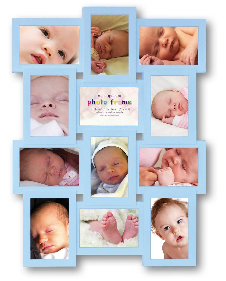 Mit Maggiore XV Blau bekommst du einen süßen Collage-Rahmen, der Platz für ganze 12 Bilder im Hoch- oder Querformat bietet. Eine perfekte Wahl, um die erste Zeit mit deinem Baby festzuhalten.