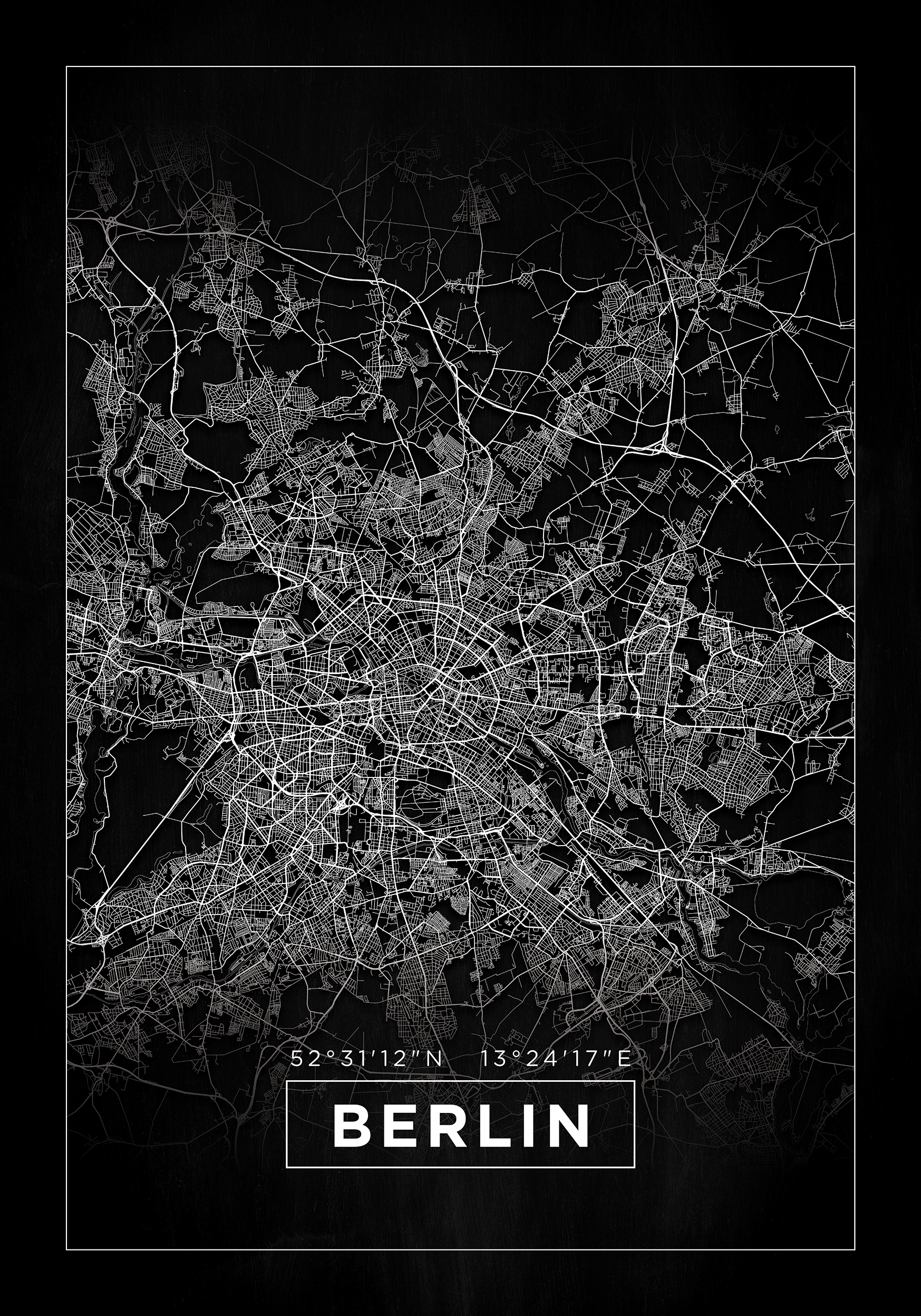Map - Berlin - Black Poster (21x29.7 cm (A4))