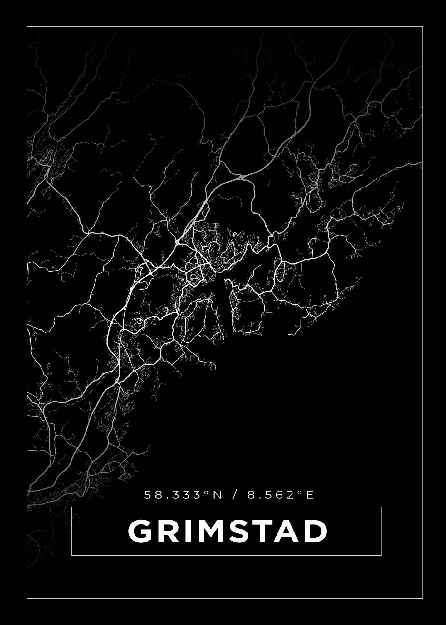 Map - Grimstad - Black (21x29.7 cm (A4))
