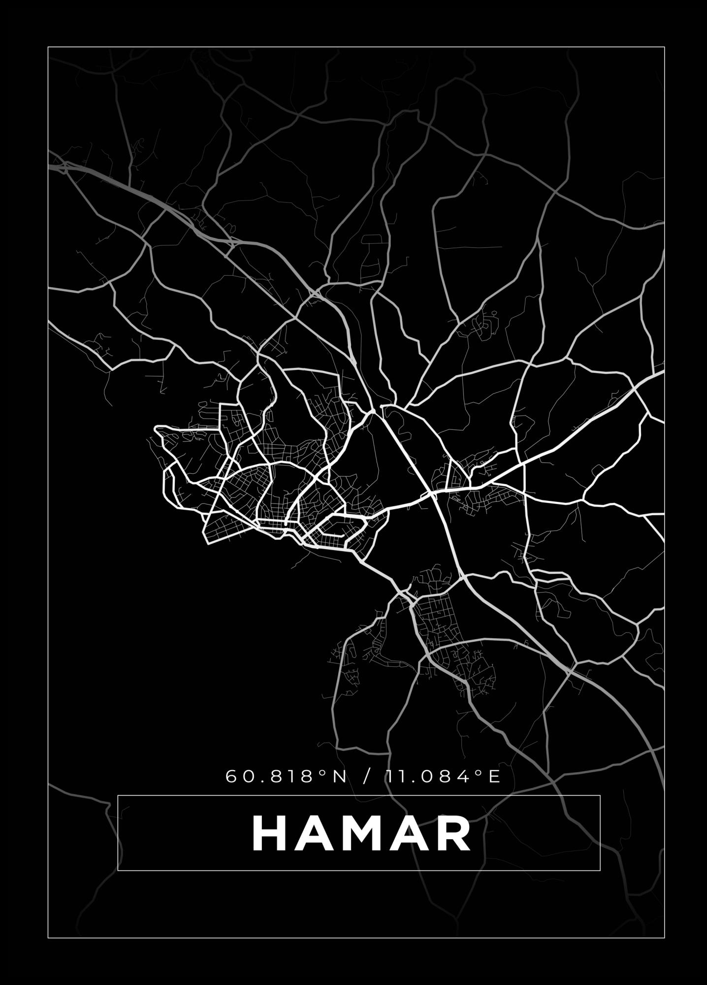 Map - Hamar - Black (21x29.7 cm (A4))