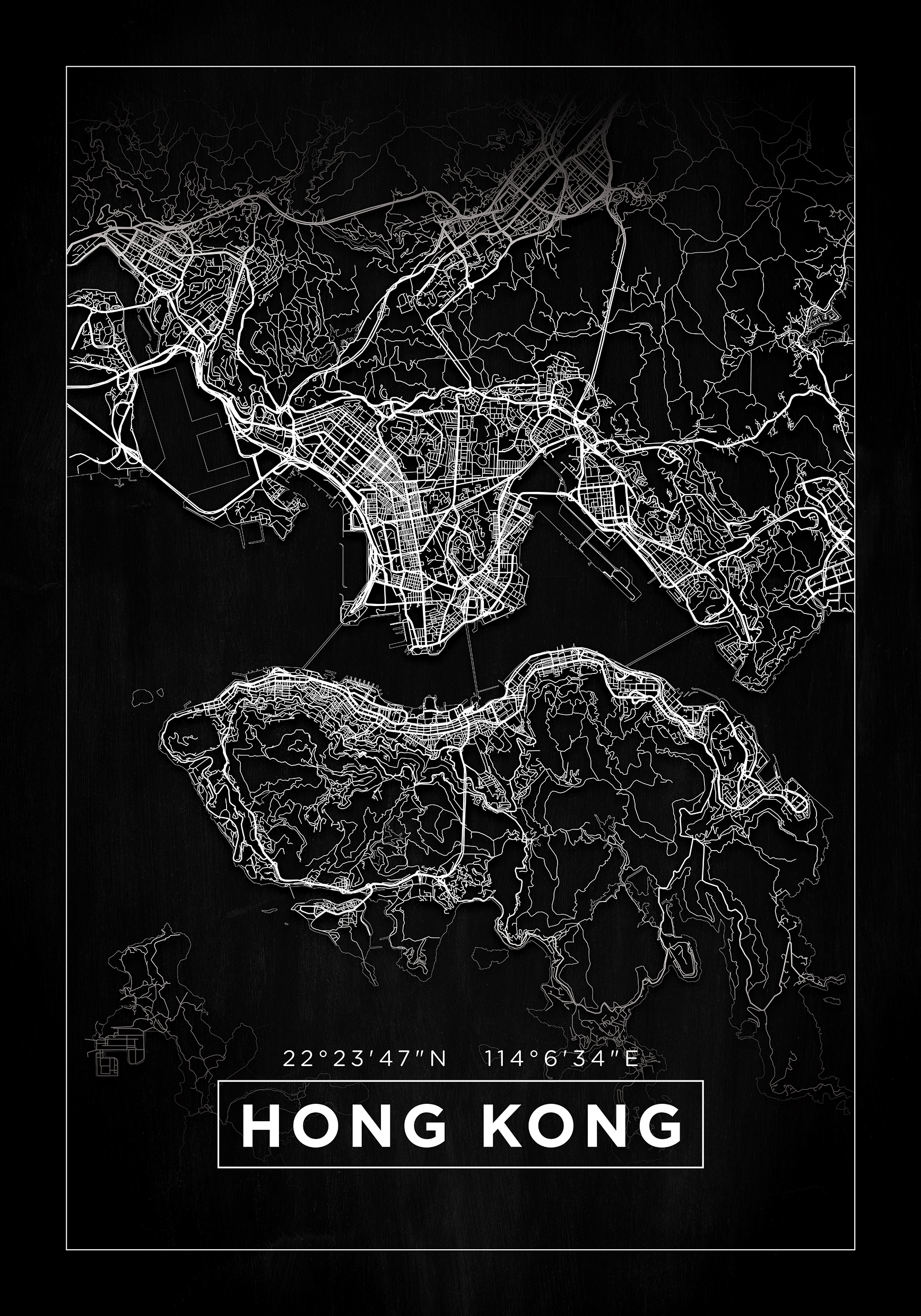 Map - Hong Kong - Black Poster (21x29.7 cm (A4))