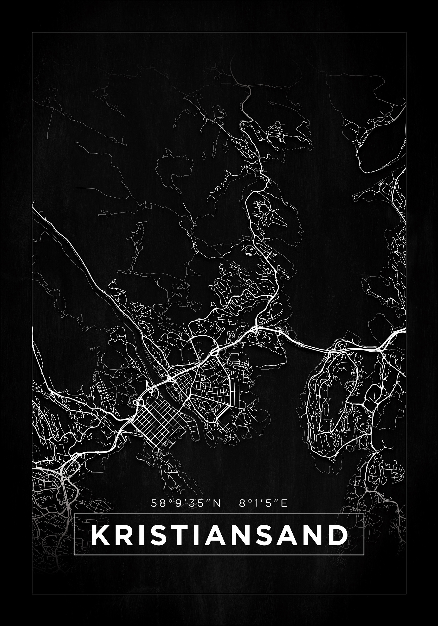 Map - Kristiansand - Black (21x29.7 cm (A4))