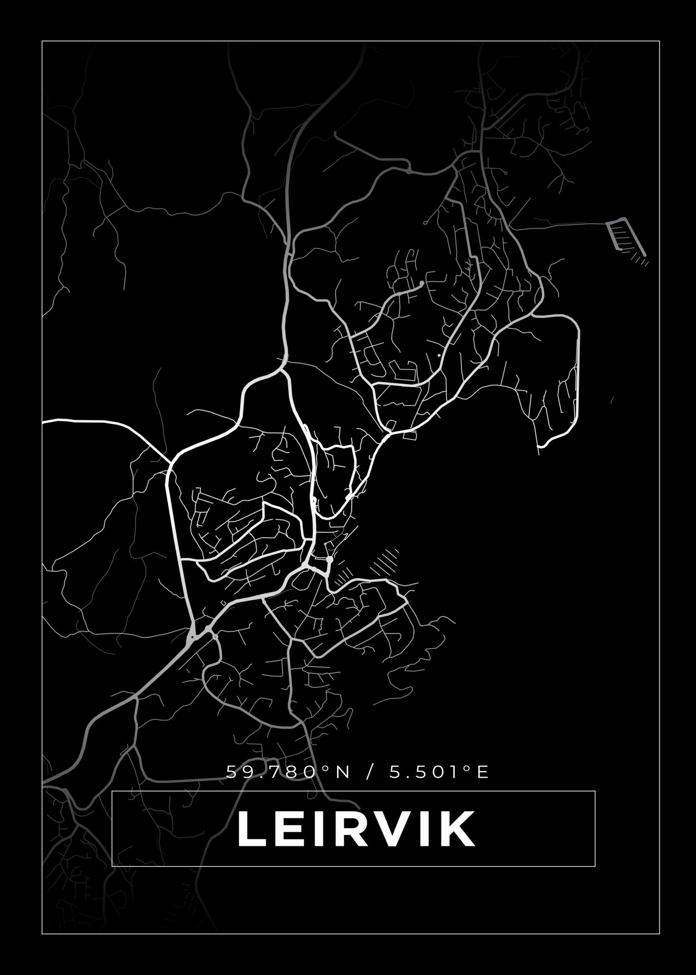 Map - Leirvik - Black (21x29.7 cm (A4))