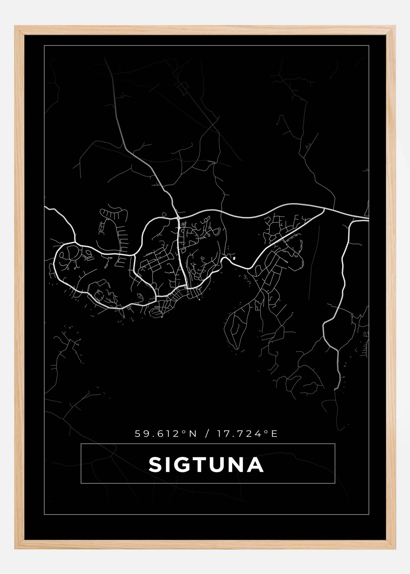 Map - Sigtuna - Black Poster (21x29.7 cm (A4))