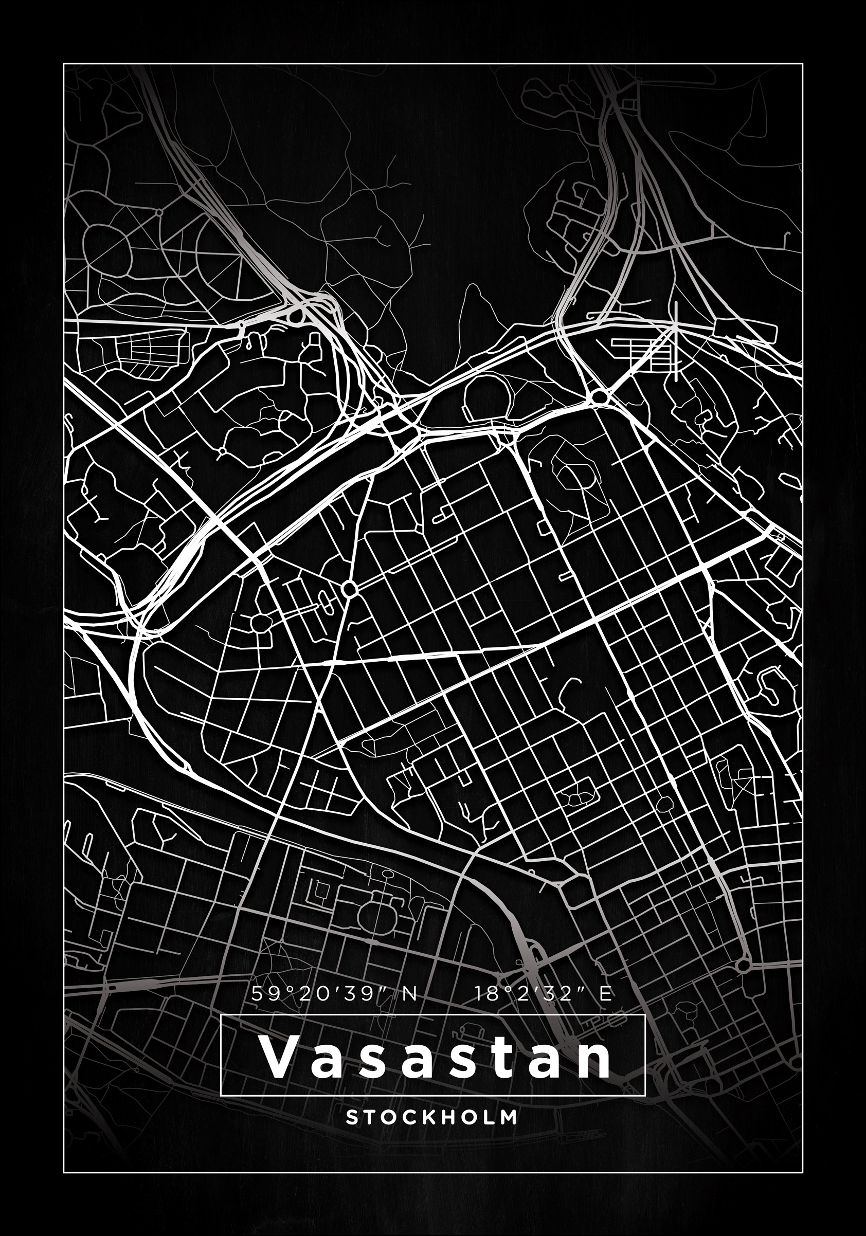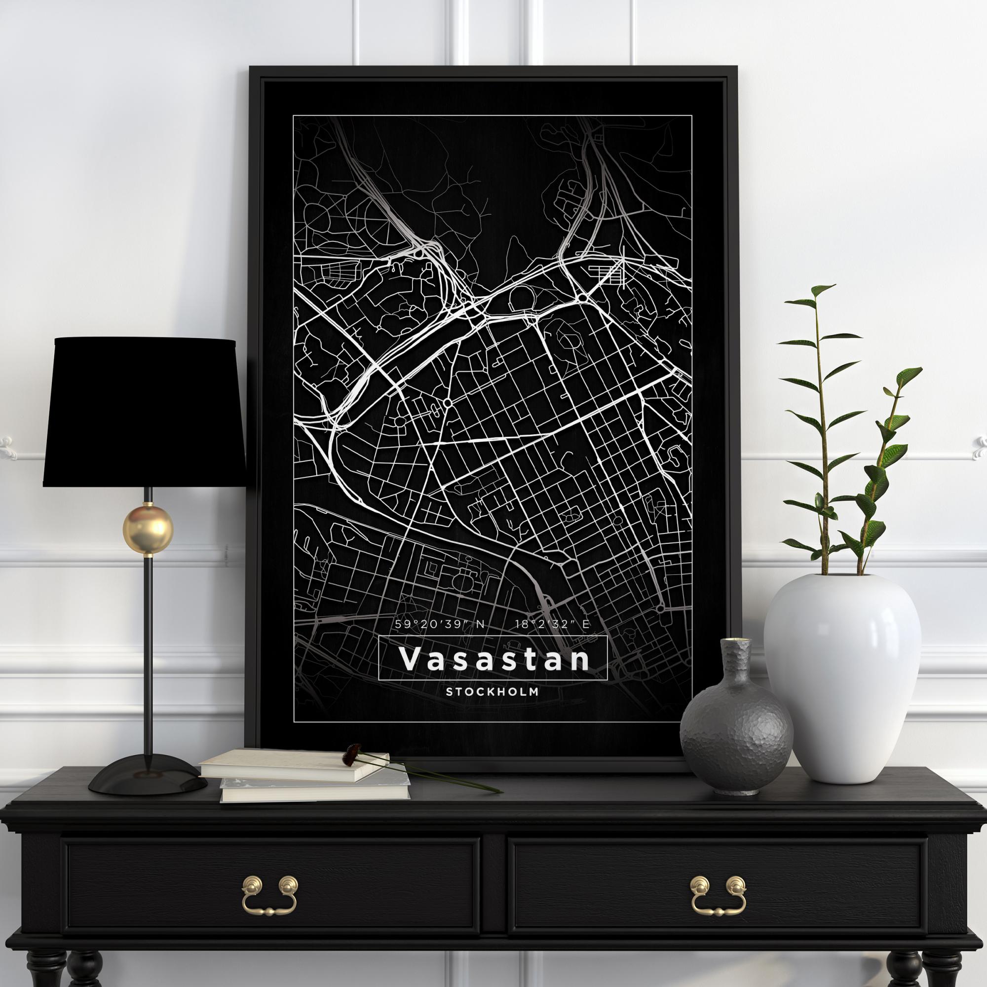 Map - Vasastan - Black Poster (21x29.7 cm (A4))