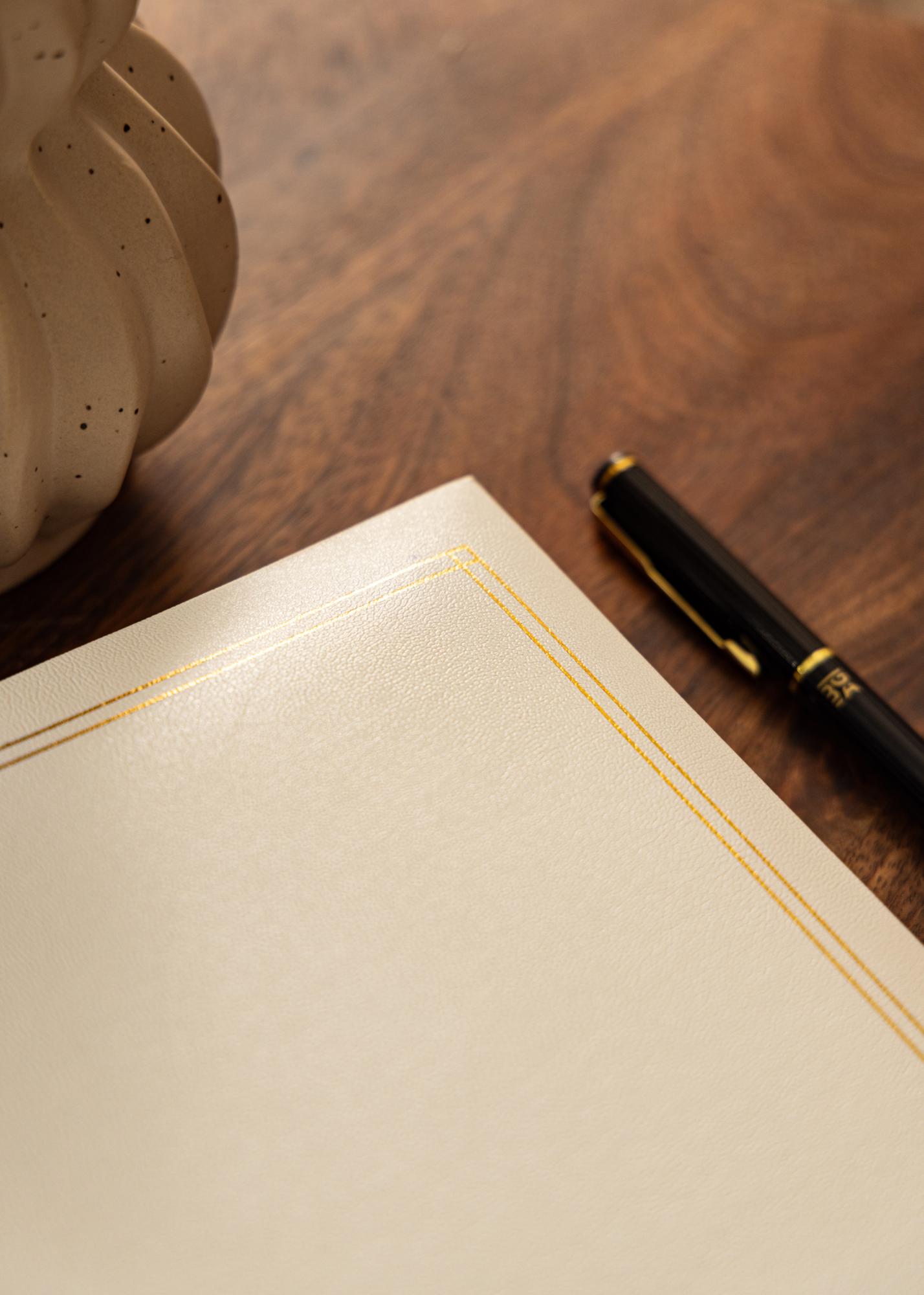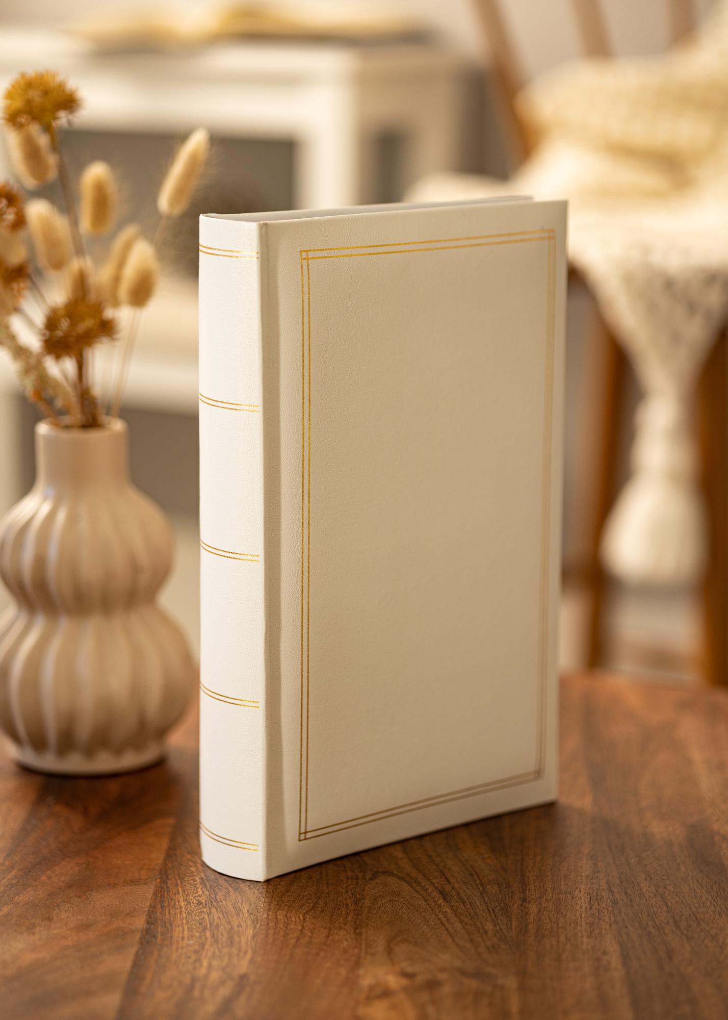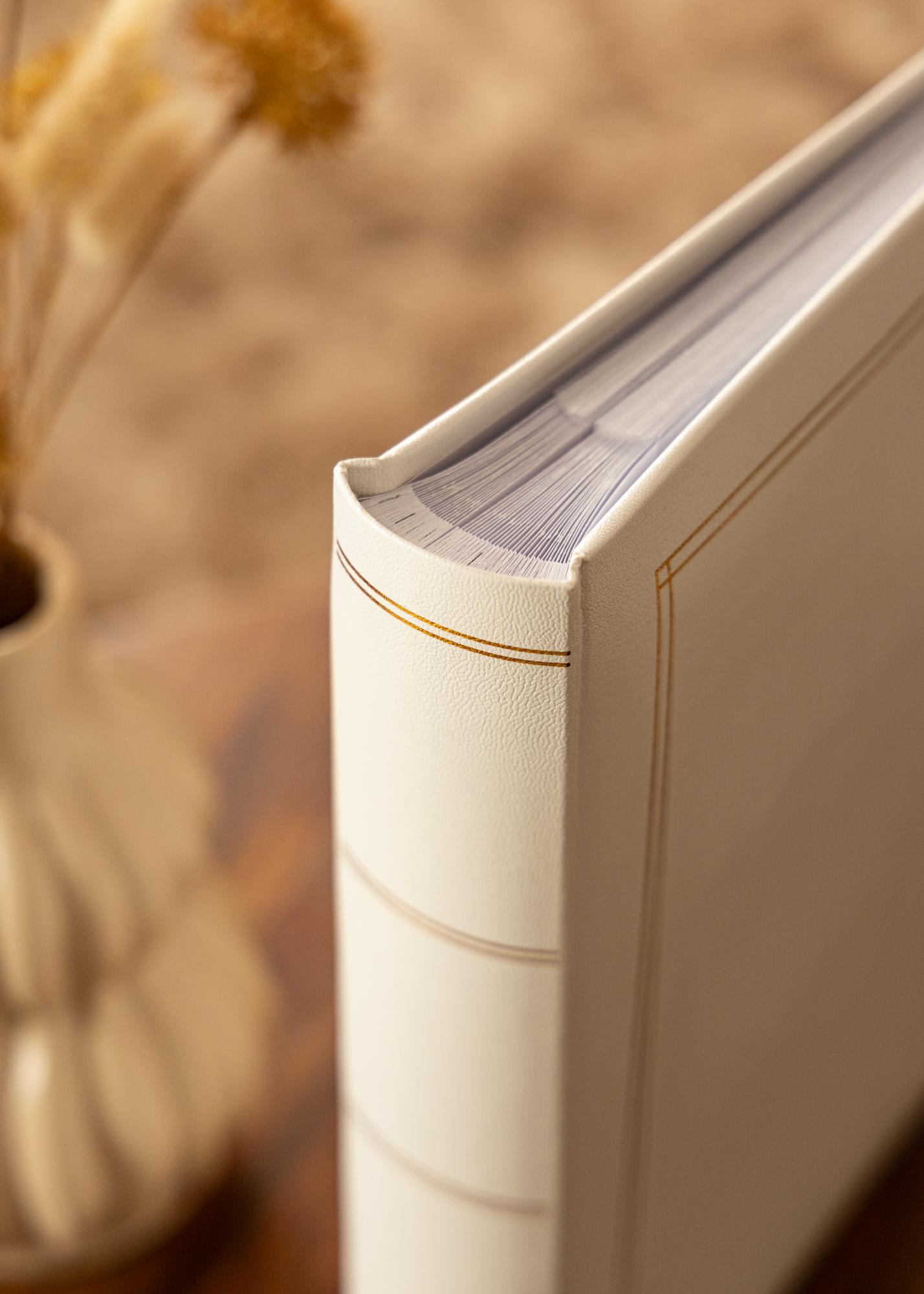 Lade deine Familie und Freunde zum gemütlichen Beisammensein ein, um gemeinsam durch schöne alte Erinnerungen zu blättern! In diesem stilvollen Fotoalbum hast du Platz für ganze 300 Fotos im Format 10x15 cm. Die praktischen Fotohüllen sorgen dafür, dass du deine Bilder schnell und einfach einfügen kannst und neben jeder Fotohülle befinden sich linierte Schreibfelder. Der Einband ist geschmackvoll in Weiß gehalten und an den Rändern und auf der Rückseite mit doppelten goldenen Linien verziert, die ein besonders luxuriöses Gefühl vermitteln. Holt die Snacks heraus, legt schöne Musik auf und lasst eure nostalgische Reise in die Vergangenheit beginnen!