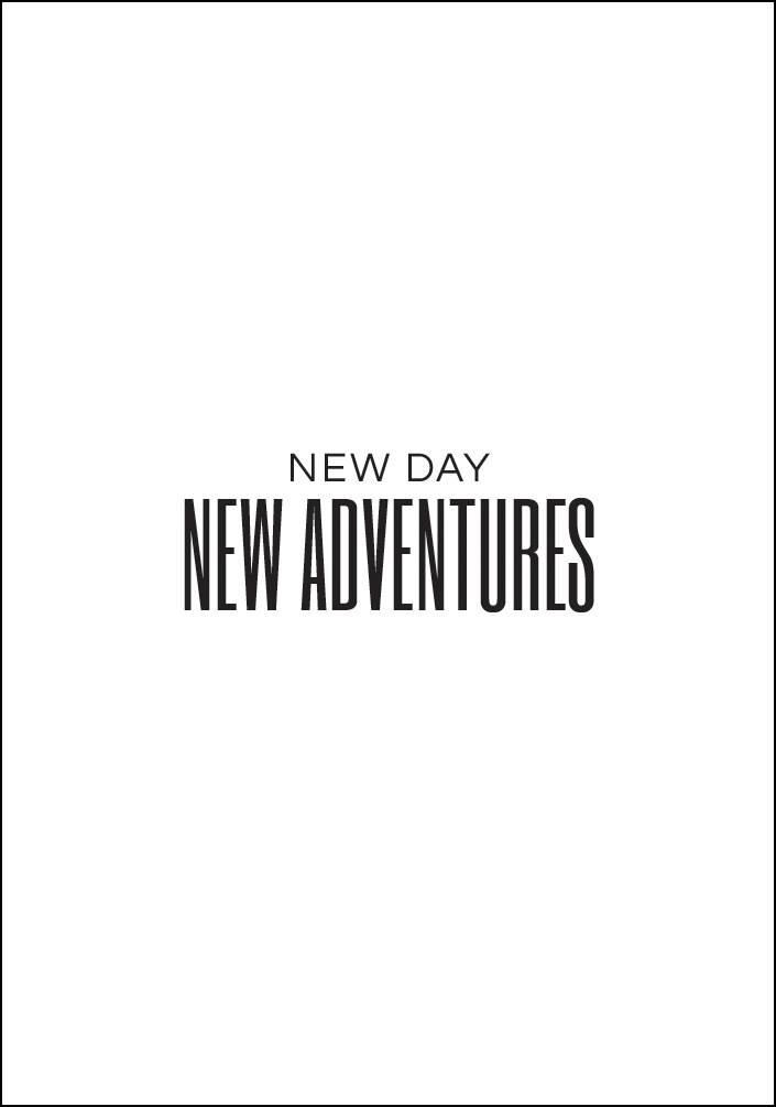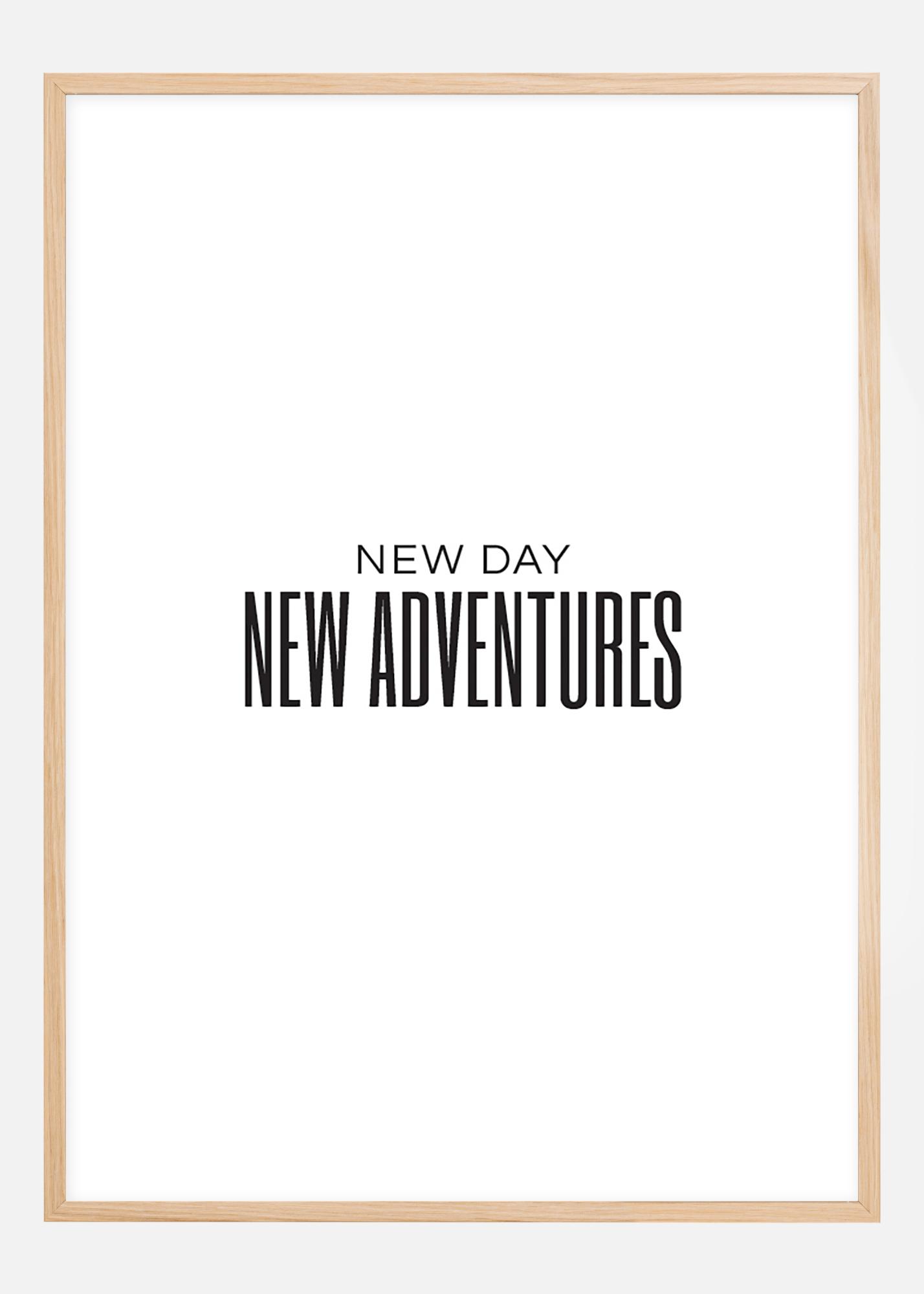 Ein einfaches und stilvolles Poster mit großen Versalien und der Botschaft "New day, New adventures". Textposter sind perfekte Elemente in größeren Collagen und Bildwänden. Ergänzen Sie gerne mit etwas aus unserem großen Sortiment an Bilderrahmen.