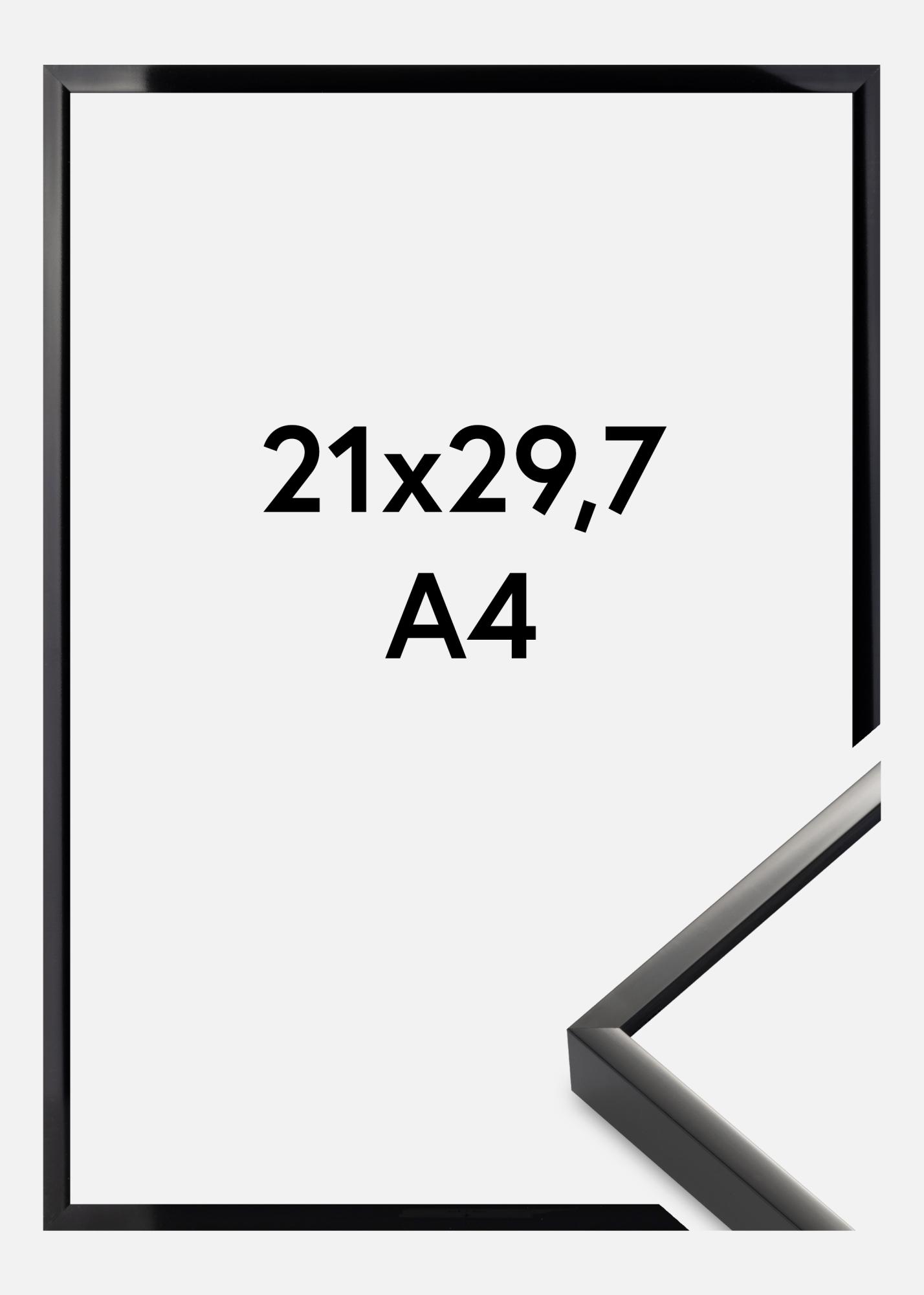 Eleganter Premium-Rahmen mit einer hochglänzenden, dünnen, schwarzen Rahmenleiste, der perfekt in ein modernes, stilvolles Interieur passt. Die Oberfläche des Bilderrahmens und sein minimalistisches schlankes Design machen ihn ideal für grafische Poster und Schwarzweißfotos. Der Rahmen besteht aus Aluminium und ist in vielen verschiedenen Größen erhältlich. Eine gute Option, wenn du eine Bilderwand mit Bildern in verschiedenen Formaten erstellen möchtest, die durch die Auswahl des Bilderrahmens zusammengehalten werden.