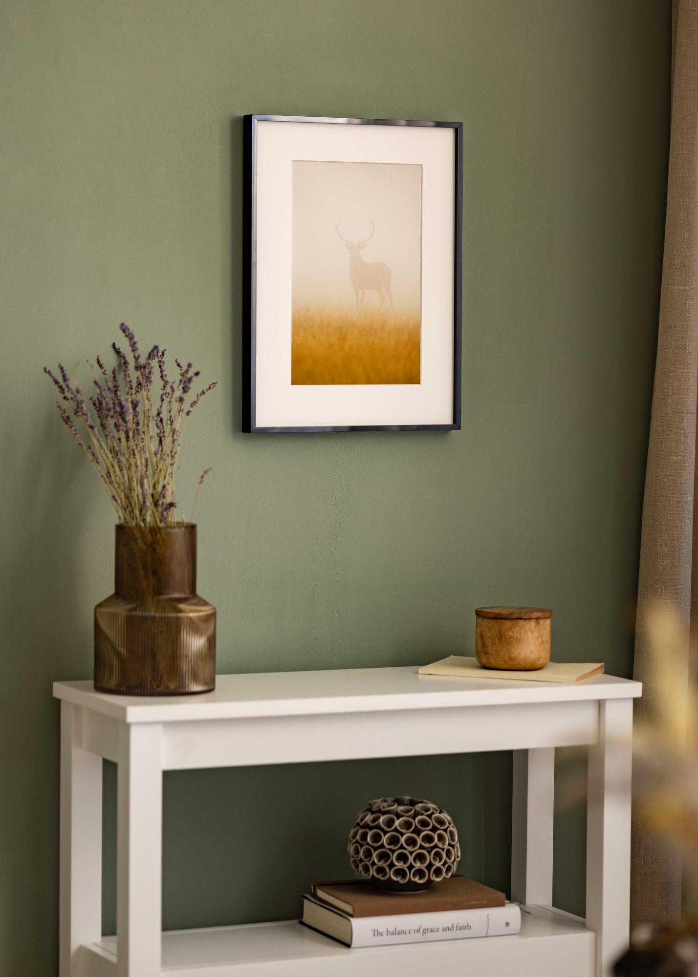Eleganter Premiumrahmen mit glänzender, dünnen schwarzen Kante, welcher perfekt in modernes stilreines Interieur passt. Der Belag des Fotorahmens und der minimalistische Ausdruck in dem eleganten Design bewirkt, dass er sehr schön für graphische Poster und Schwarzweißfotographien verwendet werden kann. Der Bilderrahmen wird aus Aluminium hergestellt und es gibt ihn in vielen verschiedenen Größen. Dadurch ist er eine gute Alternative, wenn man eine Fotowand mit unterschiedlichen Formaten, die durch die Wahl des Fotorahmens zusammengehalten werden, anfertigen will.