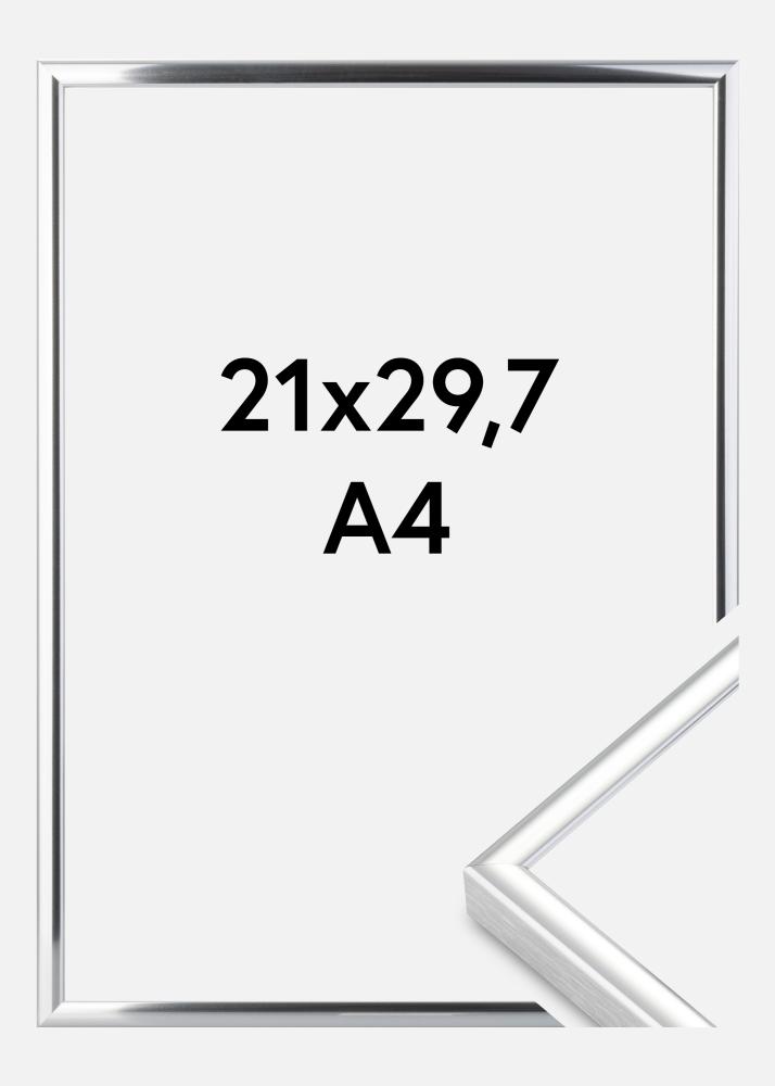 Eleganter glänzender Aluminiumrahmen in Silber mit dünnem Profil und modernem Design. Einer der besten Aluminiumrahmen von Nielsen mit hoher Qualität in allen Details. Perfekt, wenn du einen stilvollen Bilderrahmen suchst, der deinem Motiv eine elegante Umrahmung gibt.
