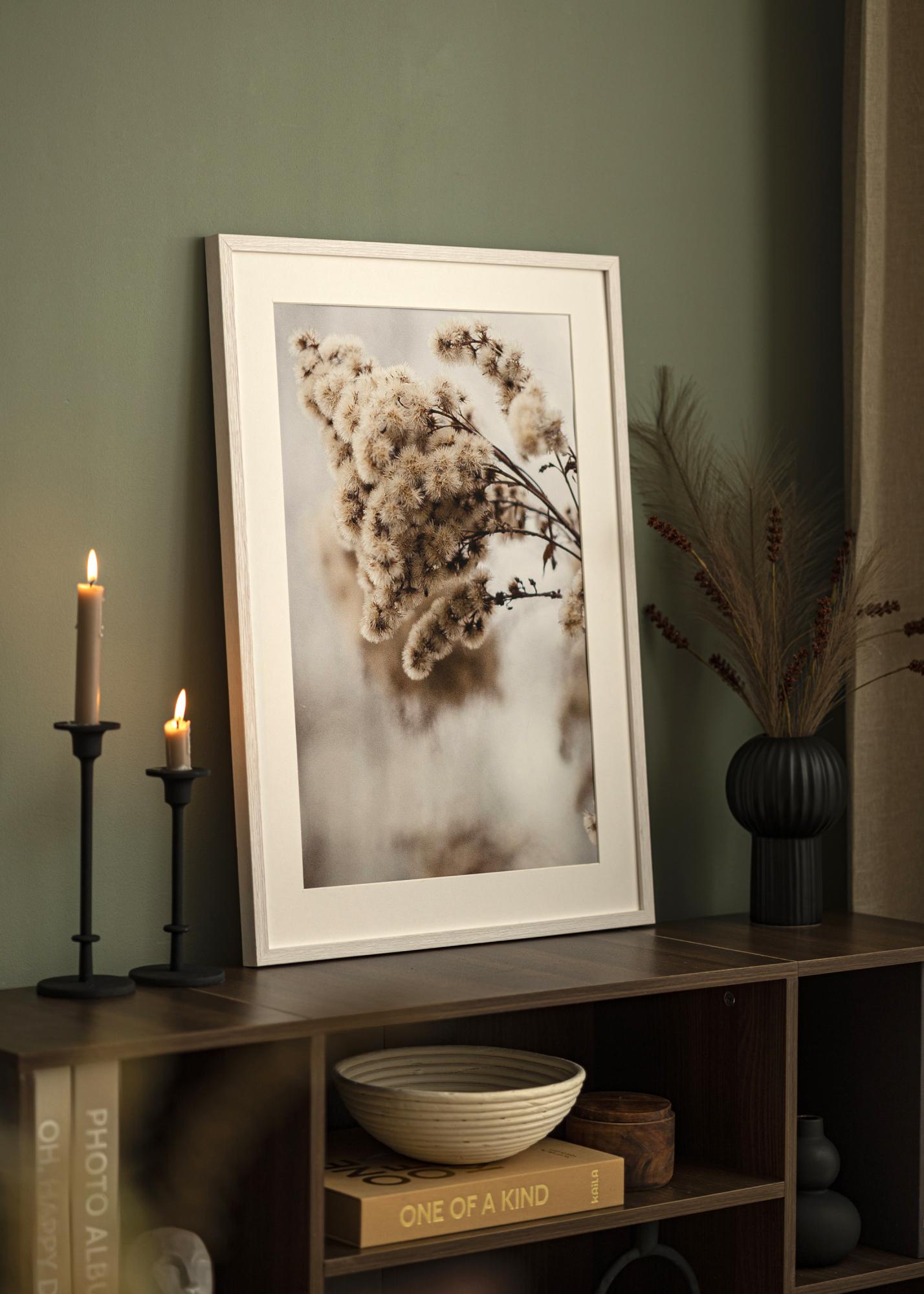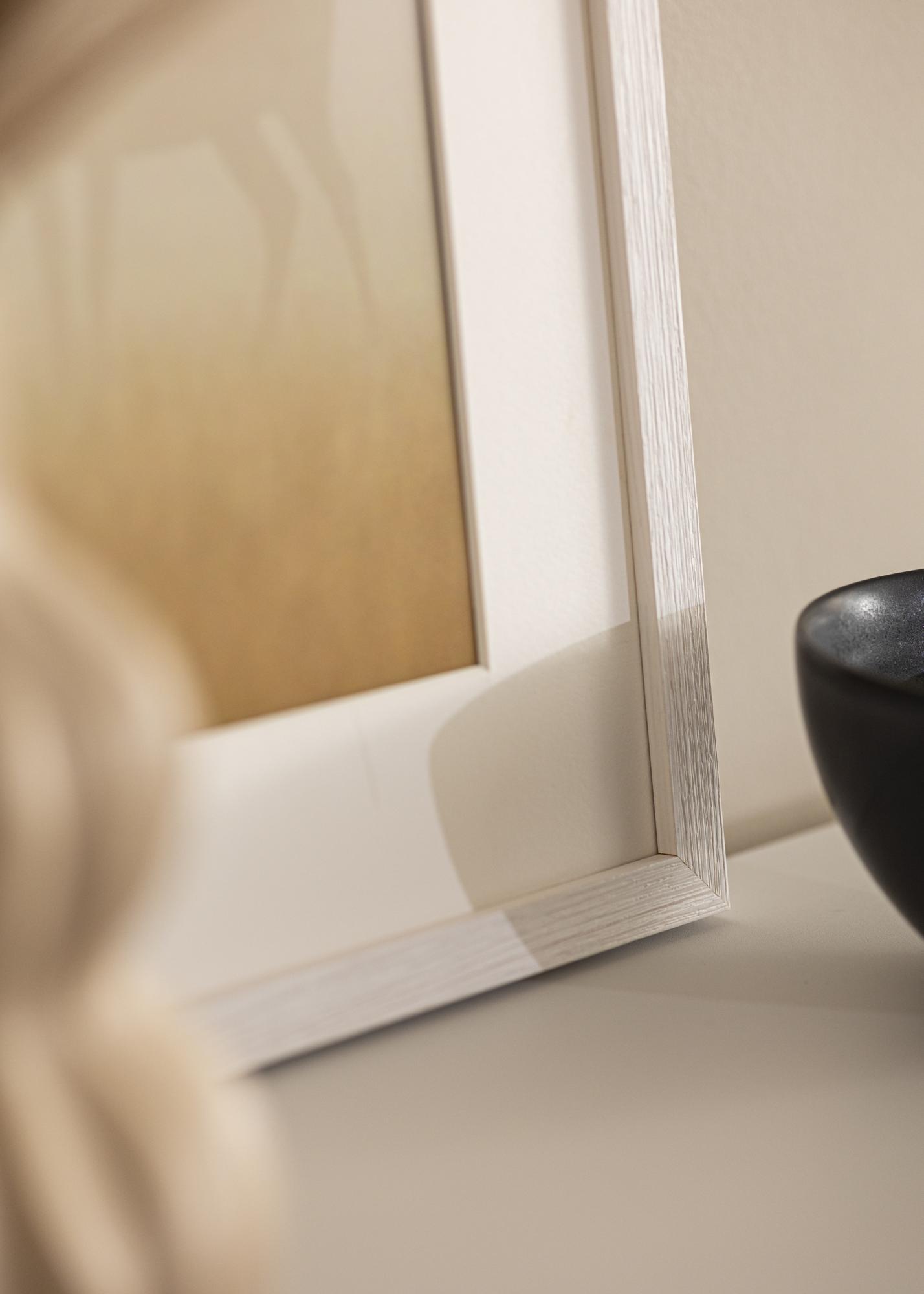 Stilvoller weißer Holzrahmen von hoher Qualität mit einem lasierten Look, der die Holzmaserung durchscheinen lässt. Die schmale Rahmenleiste passt genauso gut in einen modernen Einrichtungsstil wie in ein rustikales Interieur, in das sich die lasierte weiße Farbe gut einfügt. Der Bilderrahmen eignet sich hervorragend für Poster, Aquarelle und Fotos und ist in verschiedenen Größen erhältlich. Kombiniere den Bilderrahmen mit verschiedenen Fotos in unterschiedlichen Formaten miteinander und hänge sie nebeneinander, um eine schöne Bilderwand zu kreieren, die zu einem Blickfang an der Wand wird.