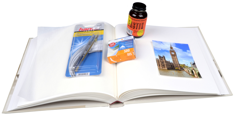 Das Album enthält 56 weiße Pappbögen + 4 wunderschön illustrierte Seiten mit dazwischenliegenden Pergaminblättern. Um Fotos in das Album einzufügen, benötigst du beispielsweise Kleber oder Fotoecken.