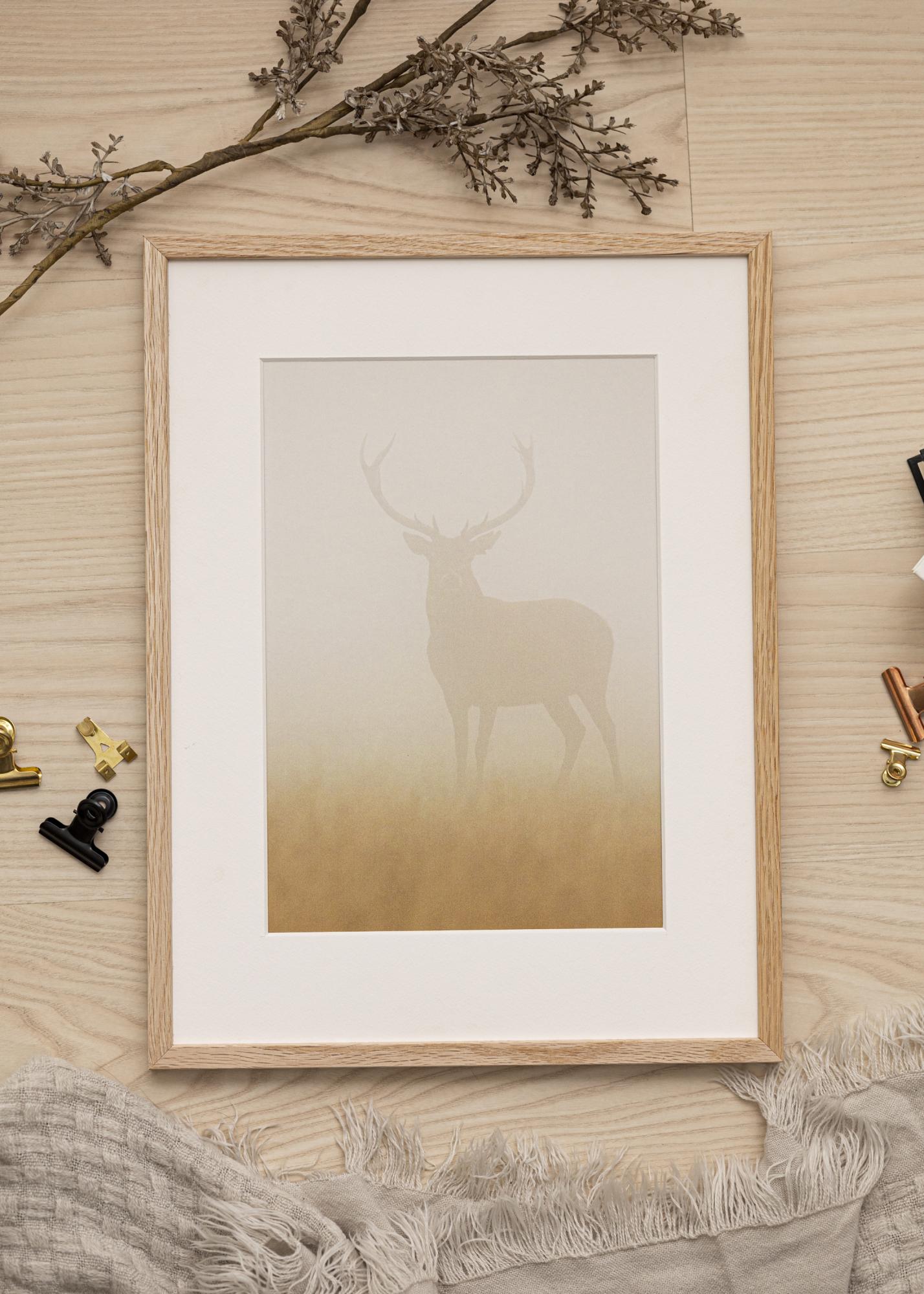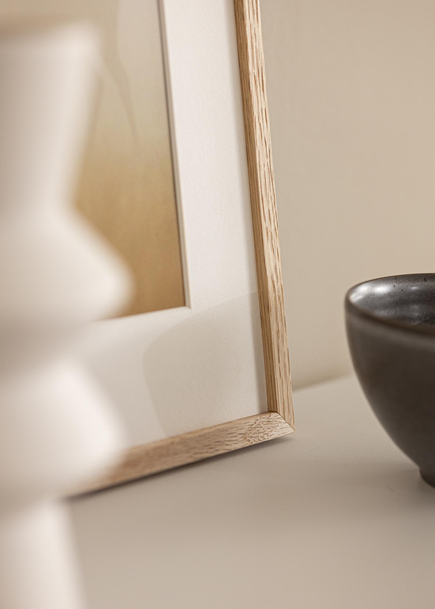 Der Oslo Acrylglas Eiche ist ein echter Eichenholzrahmen aus solider Eiche mit einem Rahmenprofil von 12 mm Breite und 18 mm Tiefe. Dank seiner Eleganz verschönert er im Nu das Bild und den Raum, in dem er seinen Platz findet.