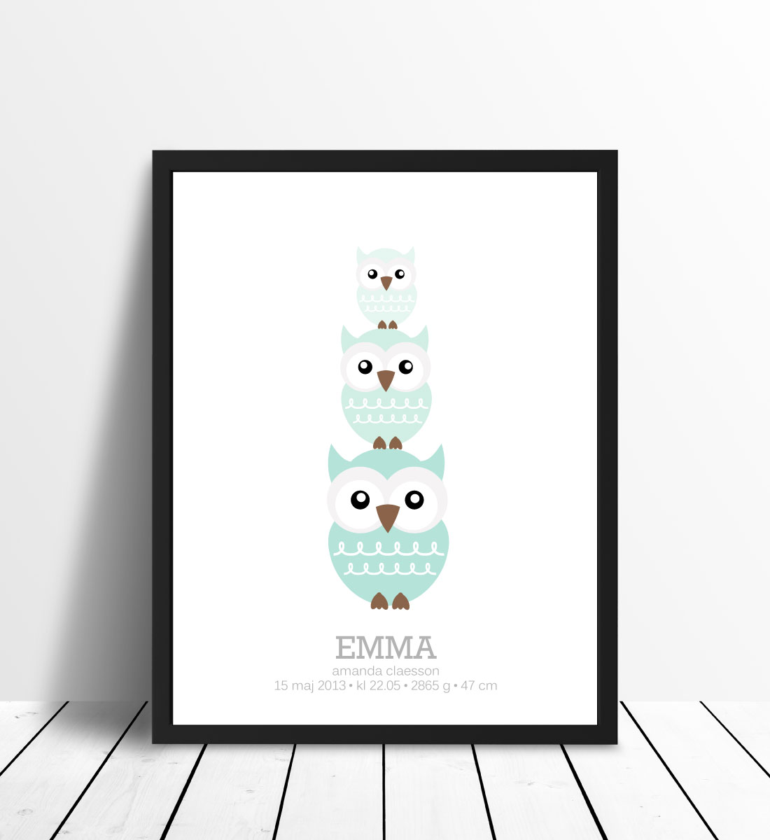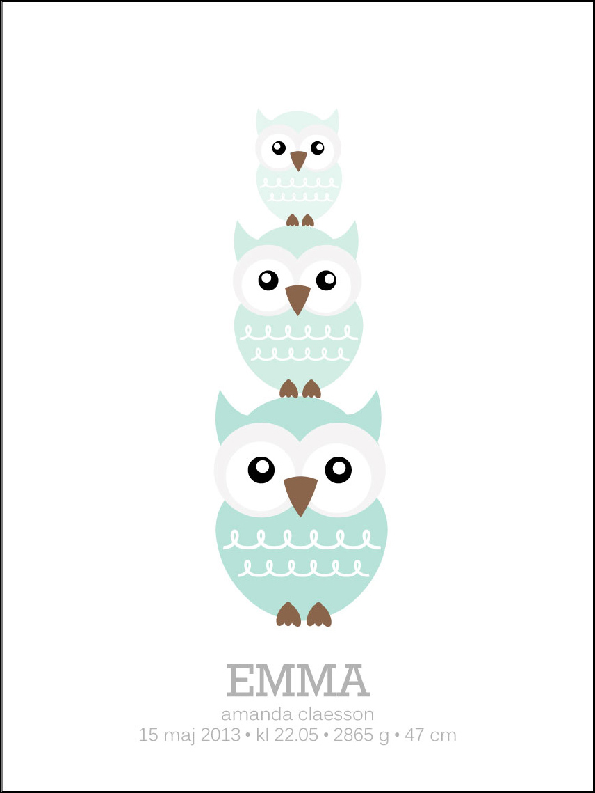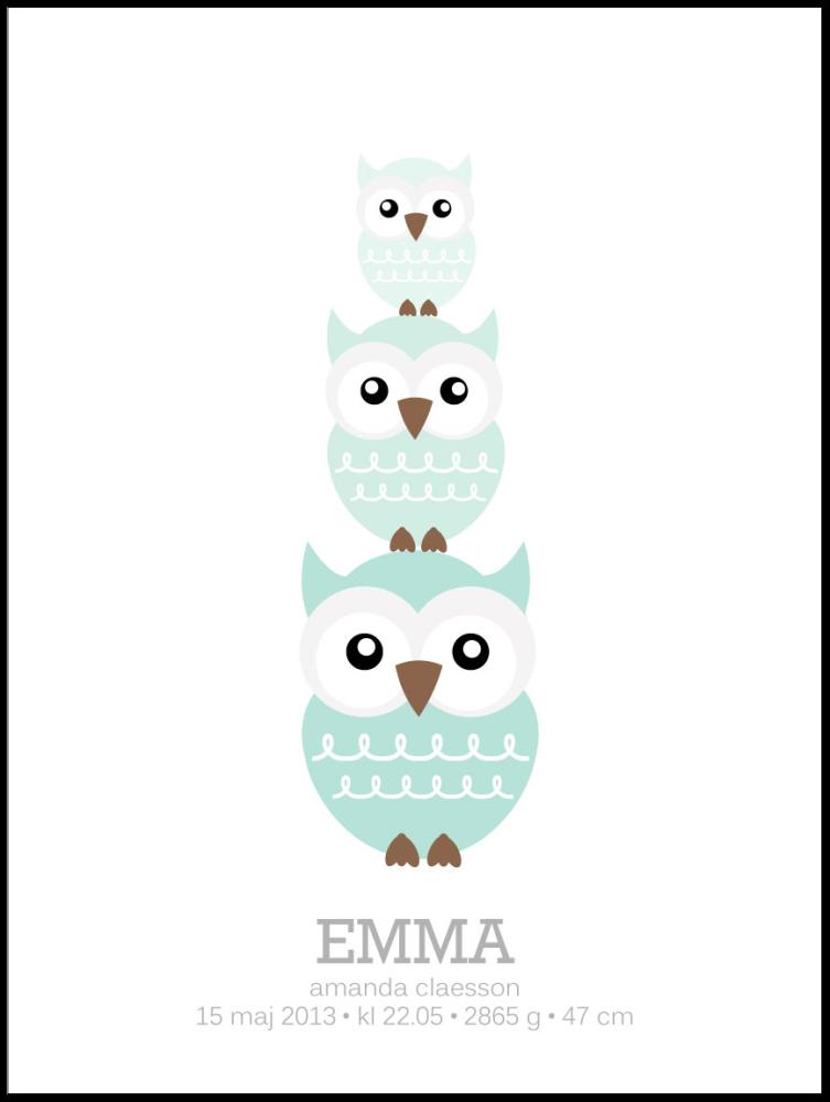 Owls Birth Poster II Green (21x29,7 cm (A4))