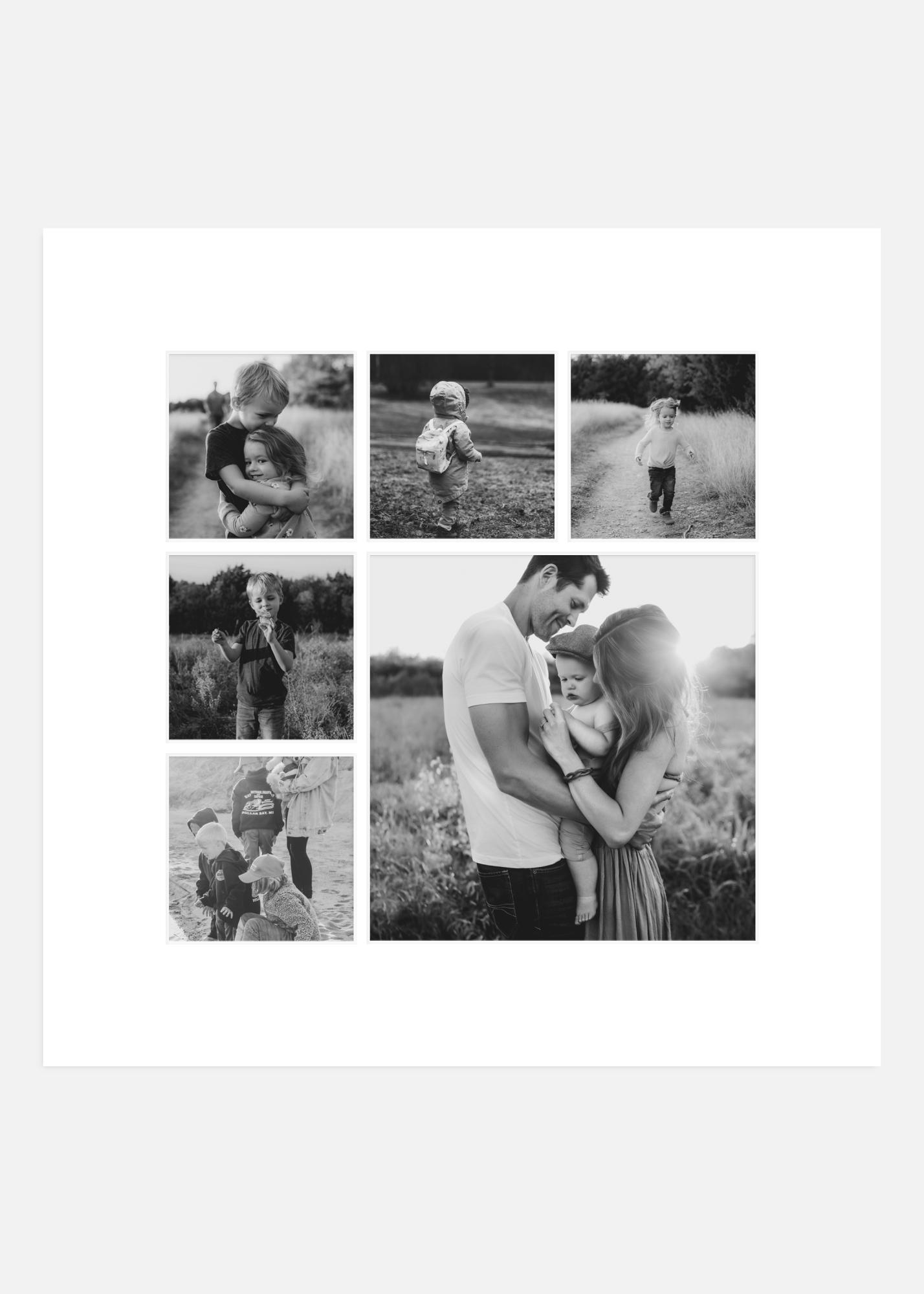 Passepartout Weiß (weißer Kern) Collage 6 Bilder 50x50 cm