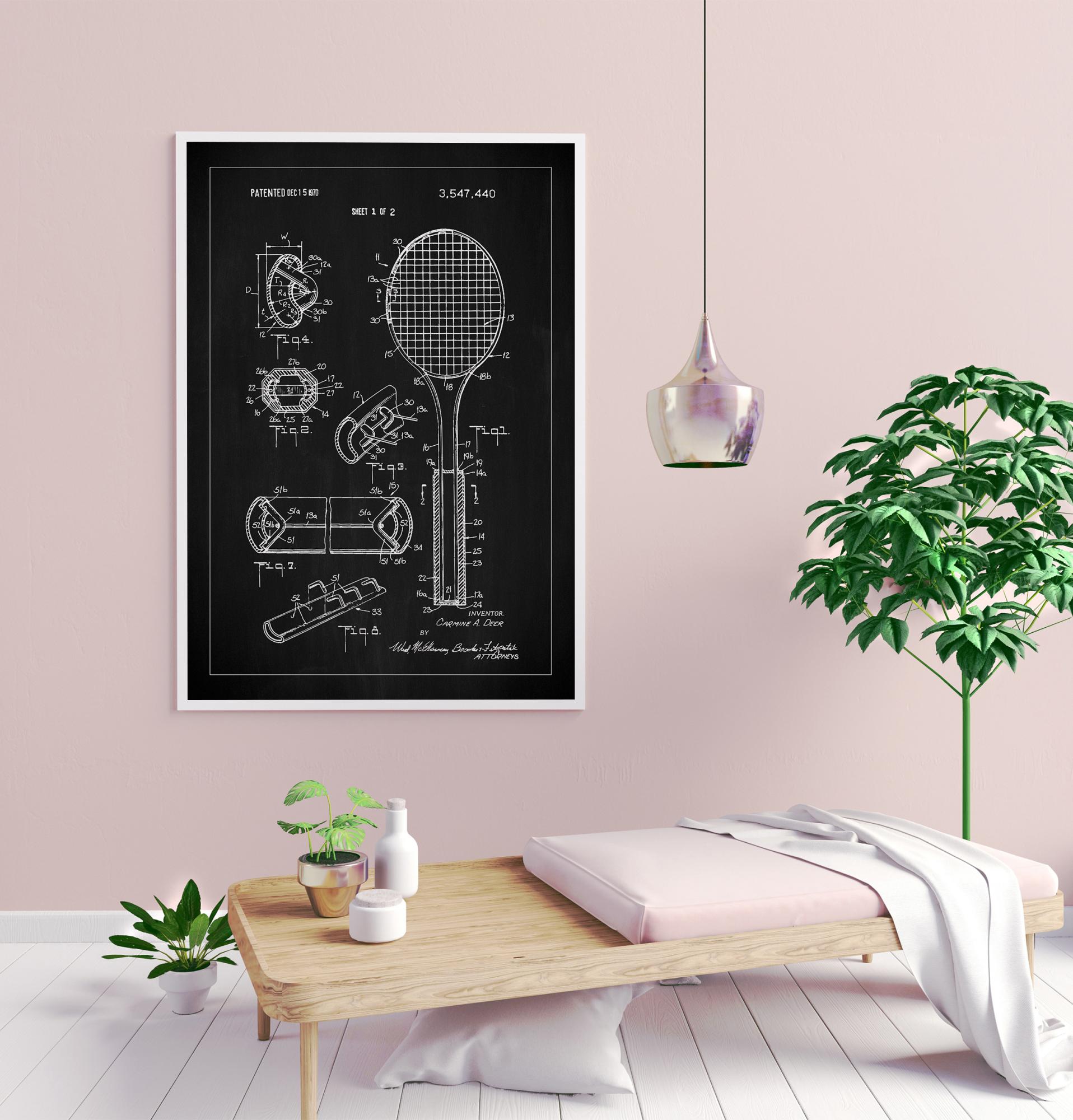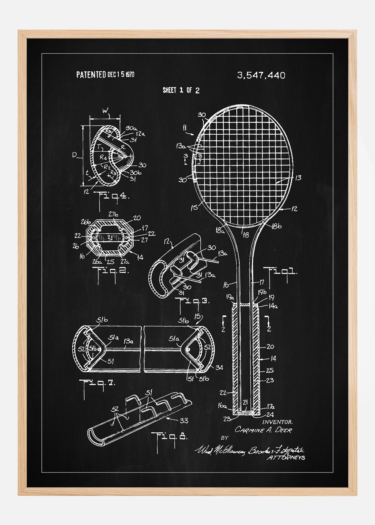 Der Detailreichtum dieses Patentposters ist sowohl lehrreich als auch inspirierend, da er die Komplexität der Erfindung und die sorgfältige Arbeit zeigt, die hinter der Herstellung von Sportausrüstung steckt. Jede Linie und jedes Maß spiegeln die Zeit und Präzision wider, die der Erfinder investiert hat, um das Spiel zu verbessern. Diese Patentzeichnung ist nicht nur eine Dekoration, sondern auch ein Stück Geschichte, perfekt, um die Wände eines Home-Office, eines Spielzimmers oder einer Sportanlage zu schmücken.