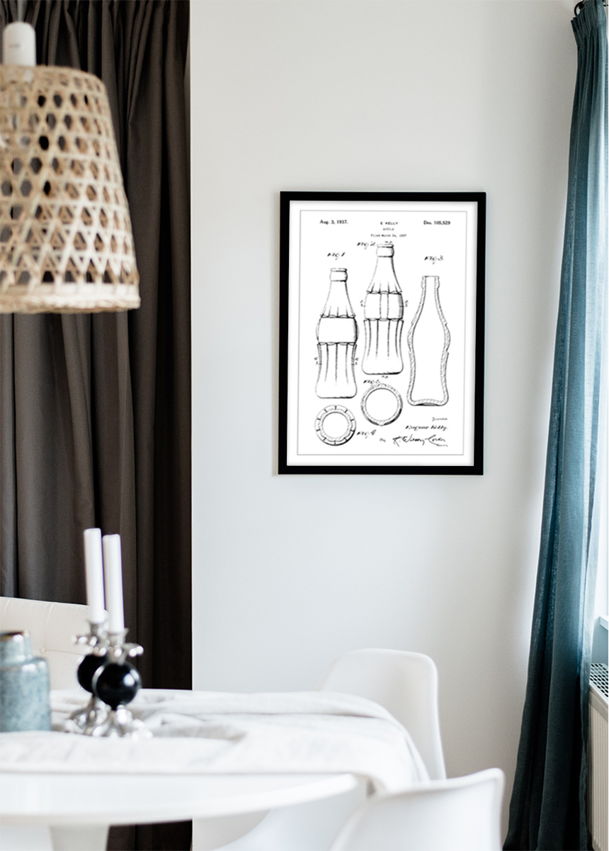 Die Patentzeichnung dieser Flasche ist ein attraktives dekoratives Stück, das sowohl in modernen Bars als auch in heimischen Küchen gut passen würde oder als Inspiration in Designstudios dienen kann. Schlüsselwörter, um diese Art von Patentausdruck zu finden, könnten 'Flaschenpatent', 'vintage Flascheposter' und 'klassische Verpackungsdesignzeichnung' umfassen, was Sammlern und Designinteressierten hilft, dieses Stück Industriegeschichte zu entdecken.