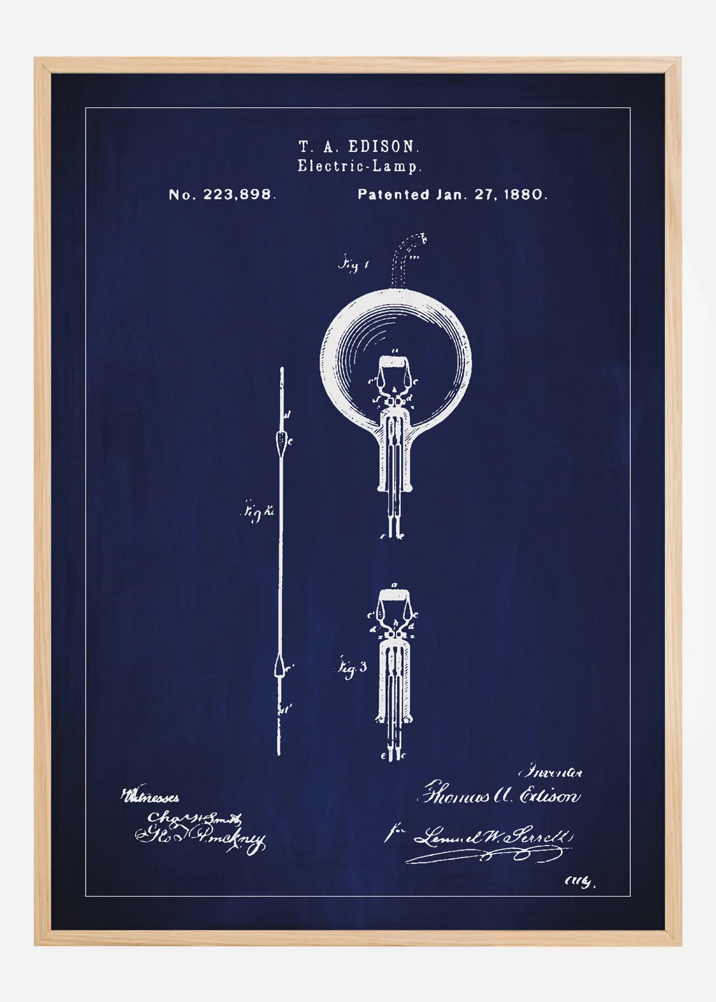 Erleben Sie einen monumentalen Moment der Geschichte mit unserem Patentposter von Thomas A. Edisons elektrischer Lampe, einer ikonischen Erfindung, die die Welt seit der Patentvergabe am 27. Januar 1880 mit der Nummer 223,898 erhellt. Diese Patentzeichnung bietet einen detaillierten Einblick in Edisons ursprüngliches Design und die Konstruktion der Lampe und verleiht jedem Raum ein industrielles und historisches Flair. Die kräftigen Linien und die Klarheit des Posters machen es zu einer eleganten Ergänzung für eine Sammlungswand oder als eigenständiges Kunstwerk.