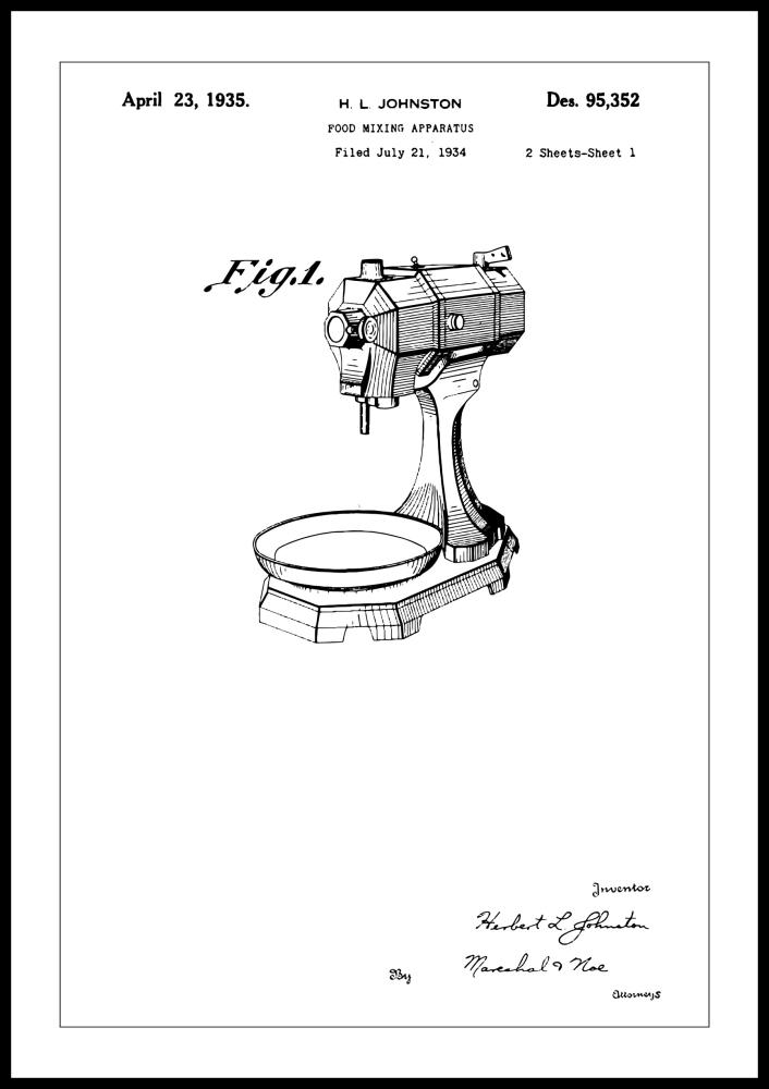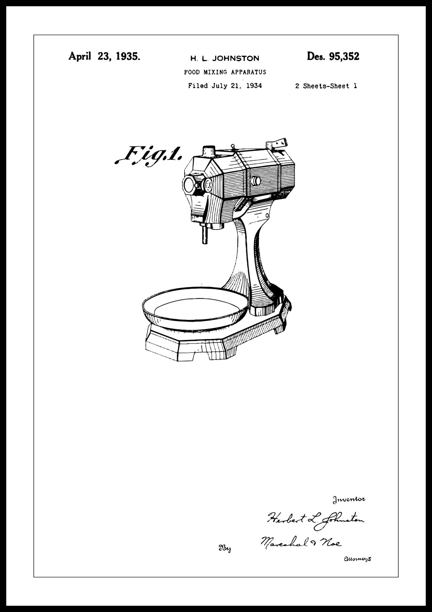 https://www.bgastore.de/Patentzeichnung-Mixer-I-21x29-7-cm-A451016127Patentzeichnung - Mixer Ihttps://www.bgastore.de/resource/upk3/3Iq/M18j05X141/Affischer-Posters/Lorand_Coc/2017-01-10/Ram/mixer_1-2.jpg9.95EURDiscontinued/Poster/Poster/NeuheitenSorgen Sie mit vielen tollen Vintage-Gegenständen in Ihrer Küche für Gemütlichkeit! Dieses elegante Poster zeigt einen Mixer, wie er in den Dreißigerjahren aussah. Oben finden Sie interessante Fakten rund um das Patent, zum Beispiel das Datum, an dem das Patent beantragt wurde, wann es bewilligt wurde und den Namen des Erfinders. Unten sehen Sie die Unterschrift des Erfinders Herbert L. Johnston sowie die Unterschrift eines Anwalts. Der Mixer war für die damalige Zeit sehr modern und diente bei wohlhabenden Familien als praktische Haushaltshilfe. Dies ist Nummer 1 von insgesamt 2 Zeichnungen, die zum Patent gehören. Das Poster ist in zahlreichen verschiedenen Formaten erhältlich, so dass Sie garantiert die passende Größe finden, die genau in Ihre Küche passt. Kaufen Sie Nummer 2 doch gleich mit dazu und erstellen Sie eine schöne Bilderserie!Bildverkstad21x29.7 cm (A4)21x29.7 cm (A4)2017-01-11T10:36:56+01:00