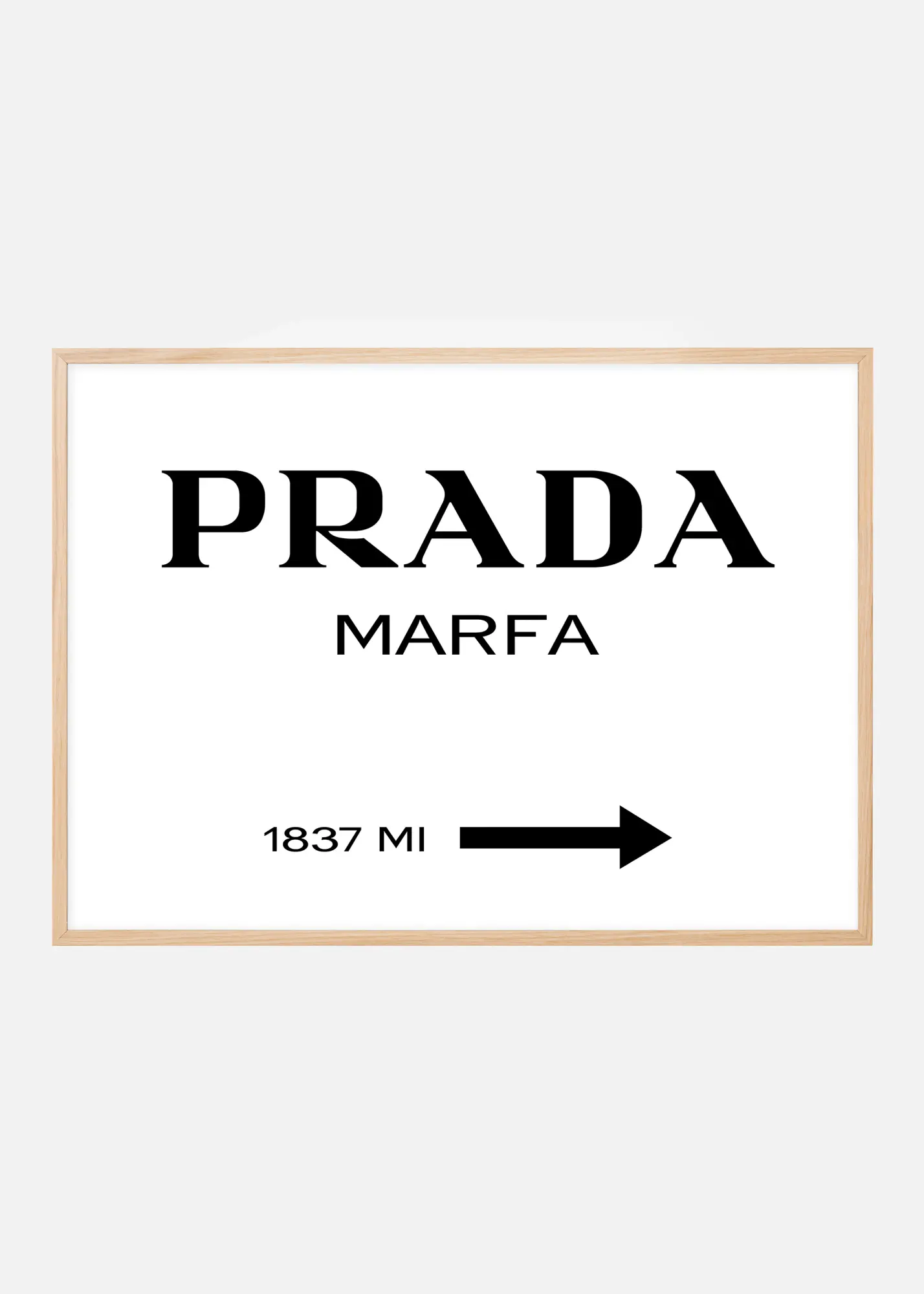 Poster mit einem Wegweiser zum permanenten Kunstwerk Prada Marfa, geschaffen von den Künstlern Elmgreen und Dragset. Die Installation wurde am ersten Oktober 2005 eingeweiht und soll einem Pradageschäft ähneln. Der schwarz-weiße print passt sowohl zum Kunstliebhaber als auch zu dem, der die Modewelt mag, und kann vorteilhaft zusammen mit anderen plakat mit grafischen Motiven aufgehängt werden. Ergänzen Sie mit einem einfachen schwarzen oder weißen Bilderrahmen, der den Text für sich sprechen lässt und der in die meisten Umgebungen passt.