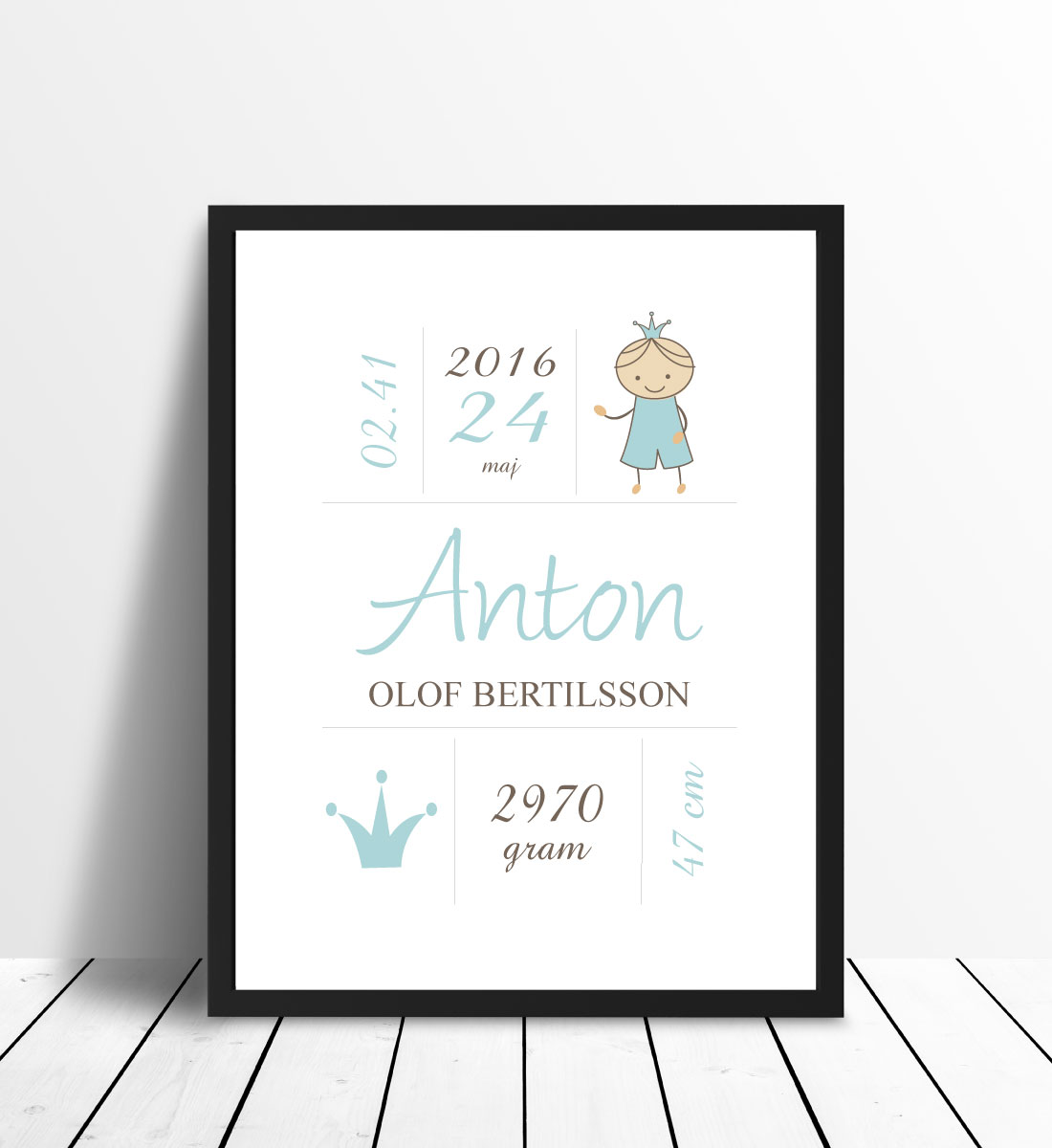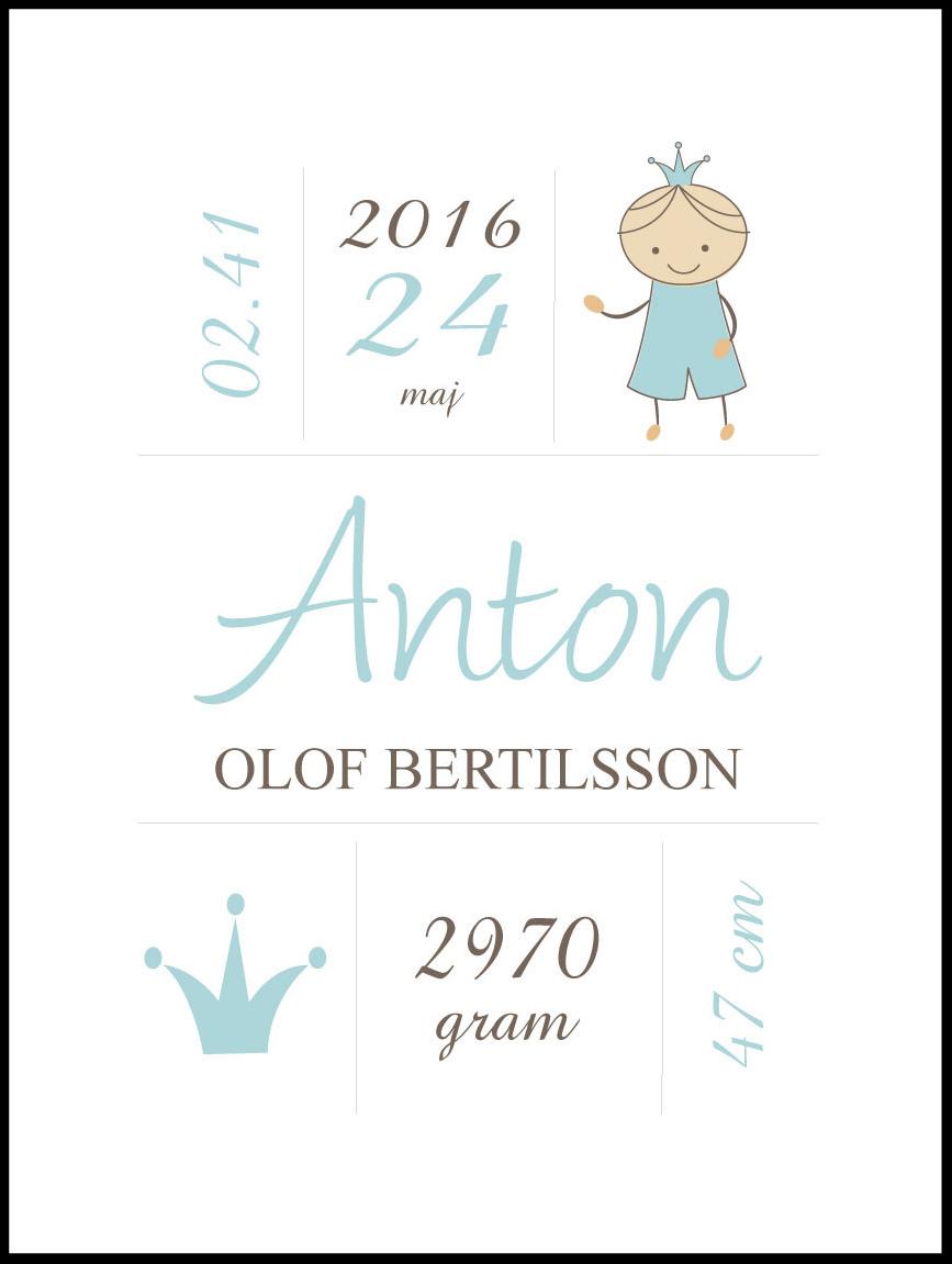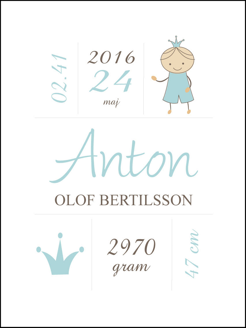 Prince Birth Poster Turquoise (21x29,7 cm (A4))