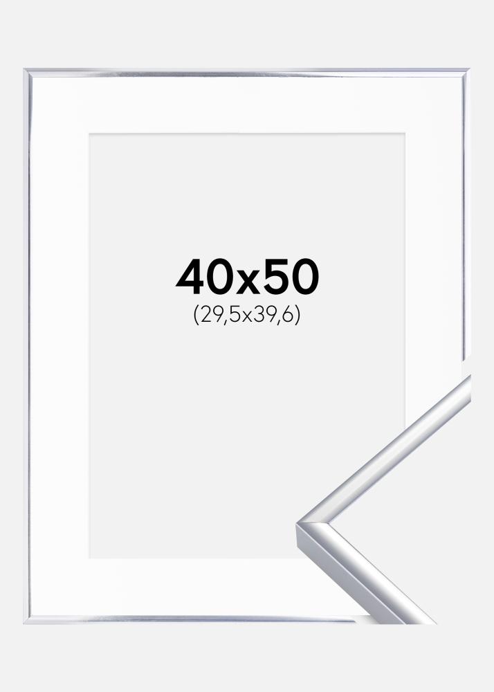 Rahmen Aluminium Silber glänzend 40x50 cm - Passepartout Weiß 12x16 inches