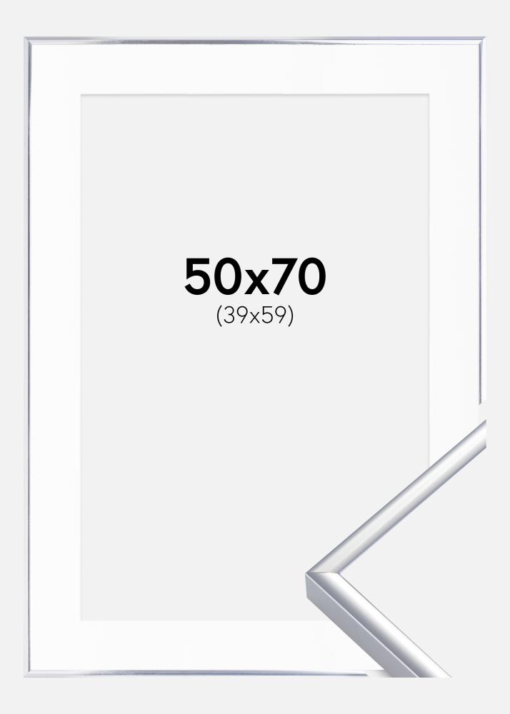 Rahmen Aluminium Silber glänzend 50x70 cm - Passepartout Weiß 40x60 cm