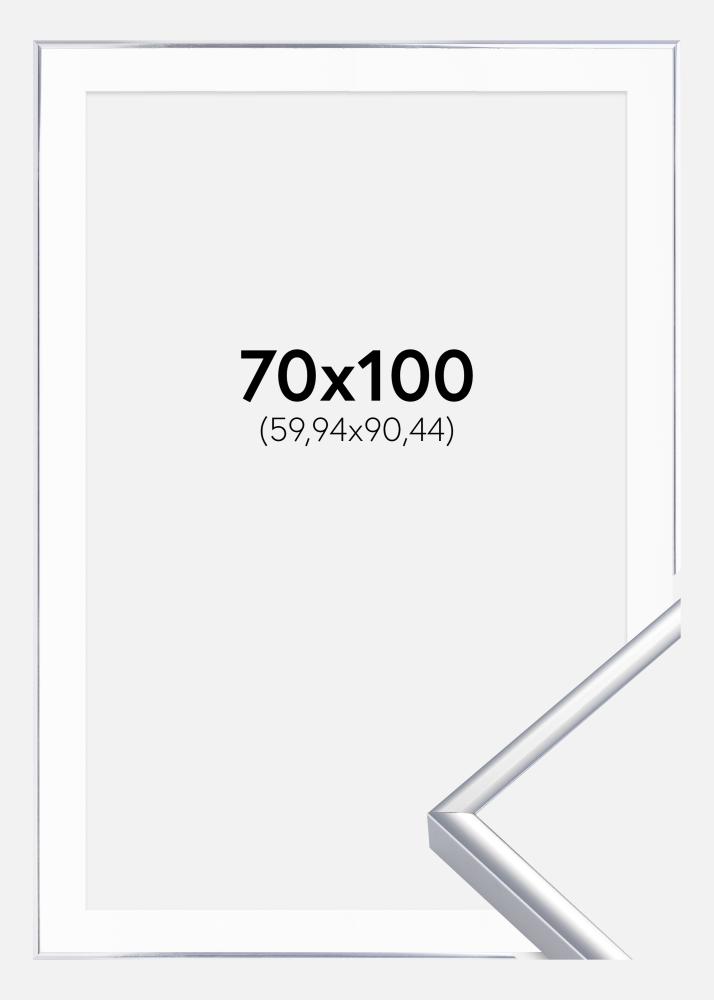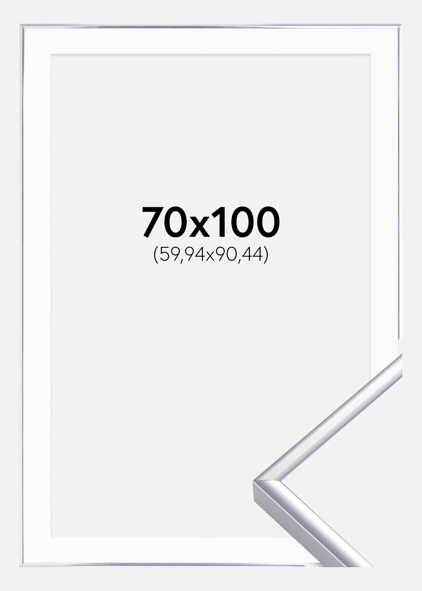 Rahmen Aluminium Silber glänzend 70x100 cm - Passepartout Weiß 24x36 inches