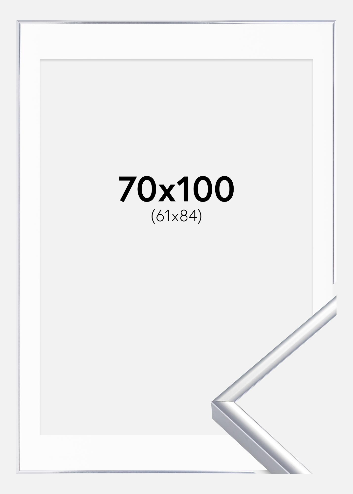 Rahmen Aluminium Silber glänzend 70x100 cm - Passepartout Weiß 62x85 cm