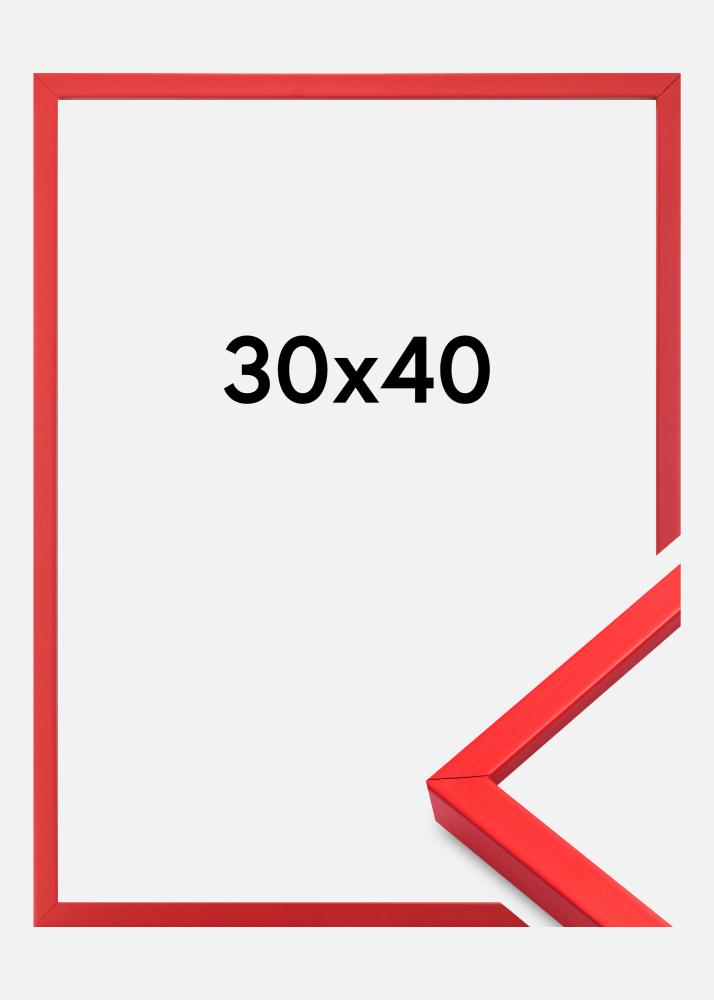 Ein eleganter, farbiger Bilderrahmen in ansprechend rotem Farbton, hergestellt in Schweden. Der rote Bilderrahmen ist aus Holz und Acrylglas gefertigt. Der durchsichtige Kunststoff kommt echtem Rahmenglas sehr nahe, ist allerdings weniger bruchempfindlich als echtes Glas. Dieser hübsche, farbenfrohe Bilderahmen setzt dein Bildmotiv stilvoll in Szene und macht damit einen tollen Blickfang aus. Die Rahmenleiste ist 12 mm breit und 20 mm tief. Die Bilderrahmenwückwand ist mit Wandhalterungen für die Aufhängung im Hoch- als auch im Querformat ausgestattet. Dieser herrlich rote Bilderrahmen ist in mehreren Größen erhältlich. Abgebildet ist die Größe 30x40 cm.