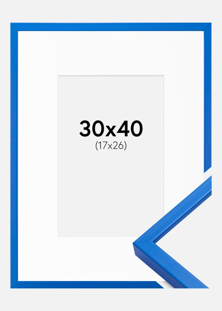 Rahmen E-Line Blau 30x40 cm - Passepartout Weiß 18x27 cm