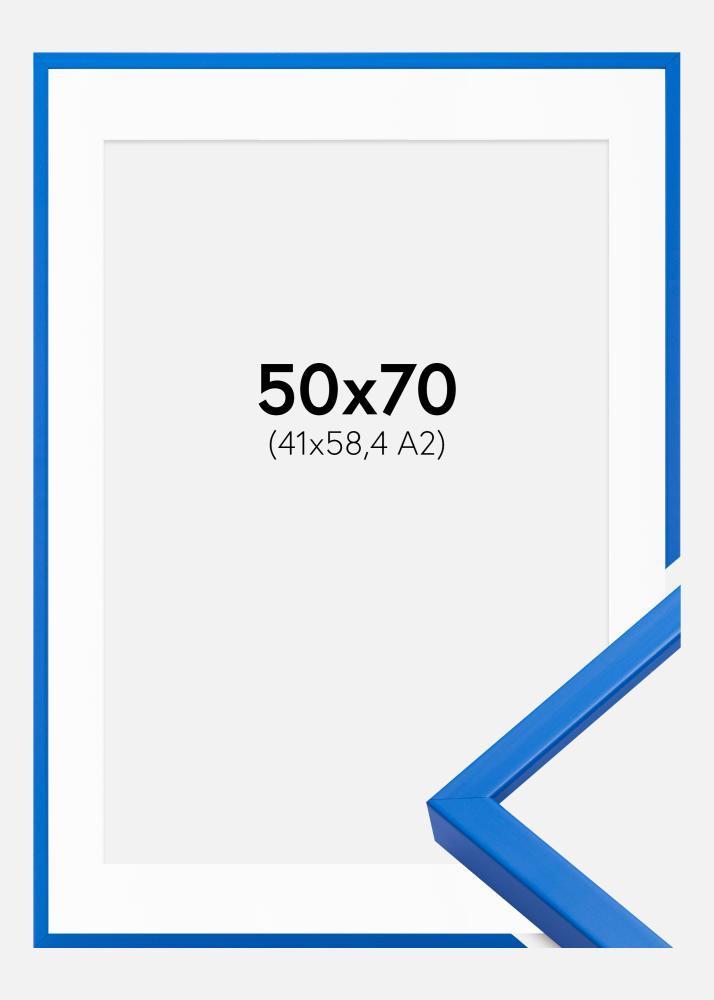 Rahmen E-Line Blau 50x70 cm - Passepartout Weiß 42x59,4 cm