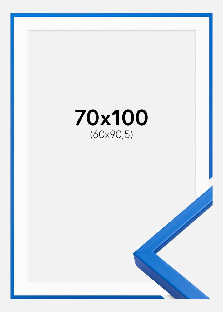 Rahmen E-Line Blau 70x100 cm - Passepartout Weiß 61x91,5 cm